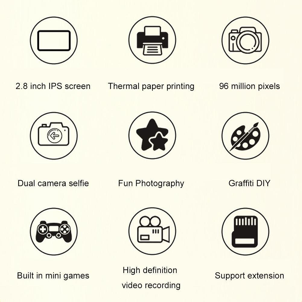 • 1 x 1080P Instant Print Camera 2.8-Inch Screen Front And Rear Dual Lens Kids Camera - Blue