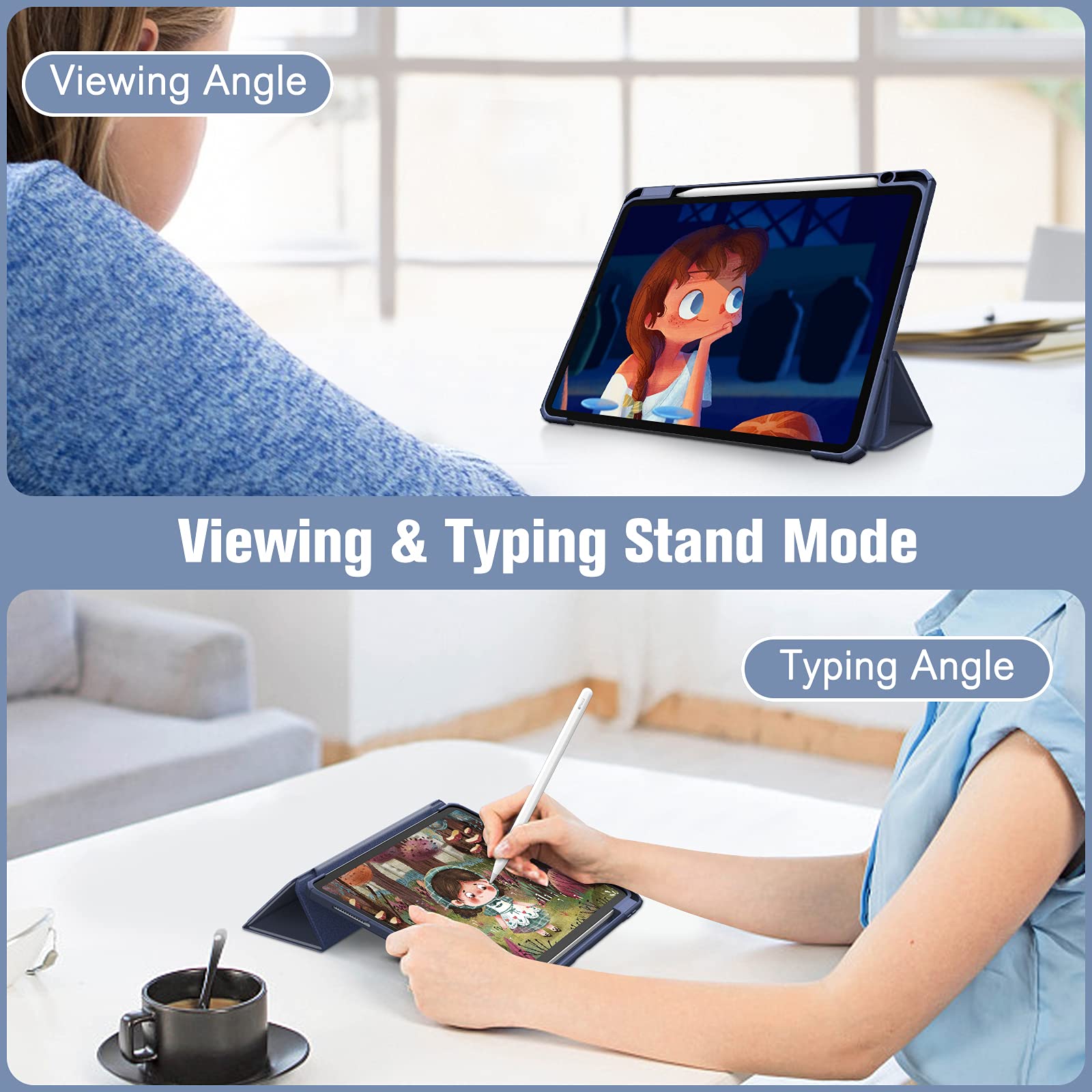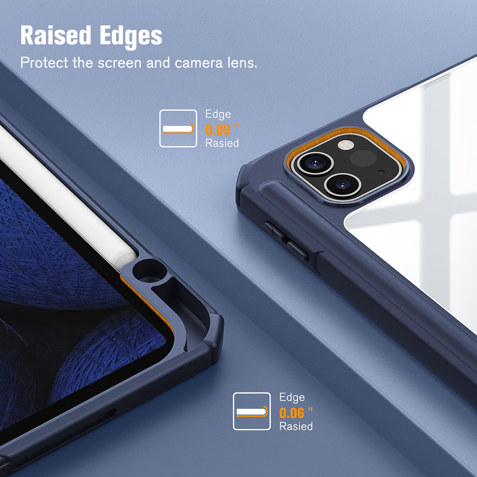 iPad Pro 11 Inch 2020-2022 Soft Tpu Smart Premium Case Auto Sleep Wake Stand Clear Cover Pencil holder navy blue