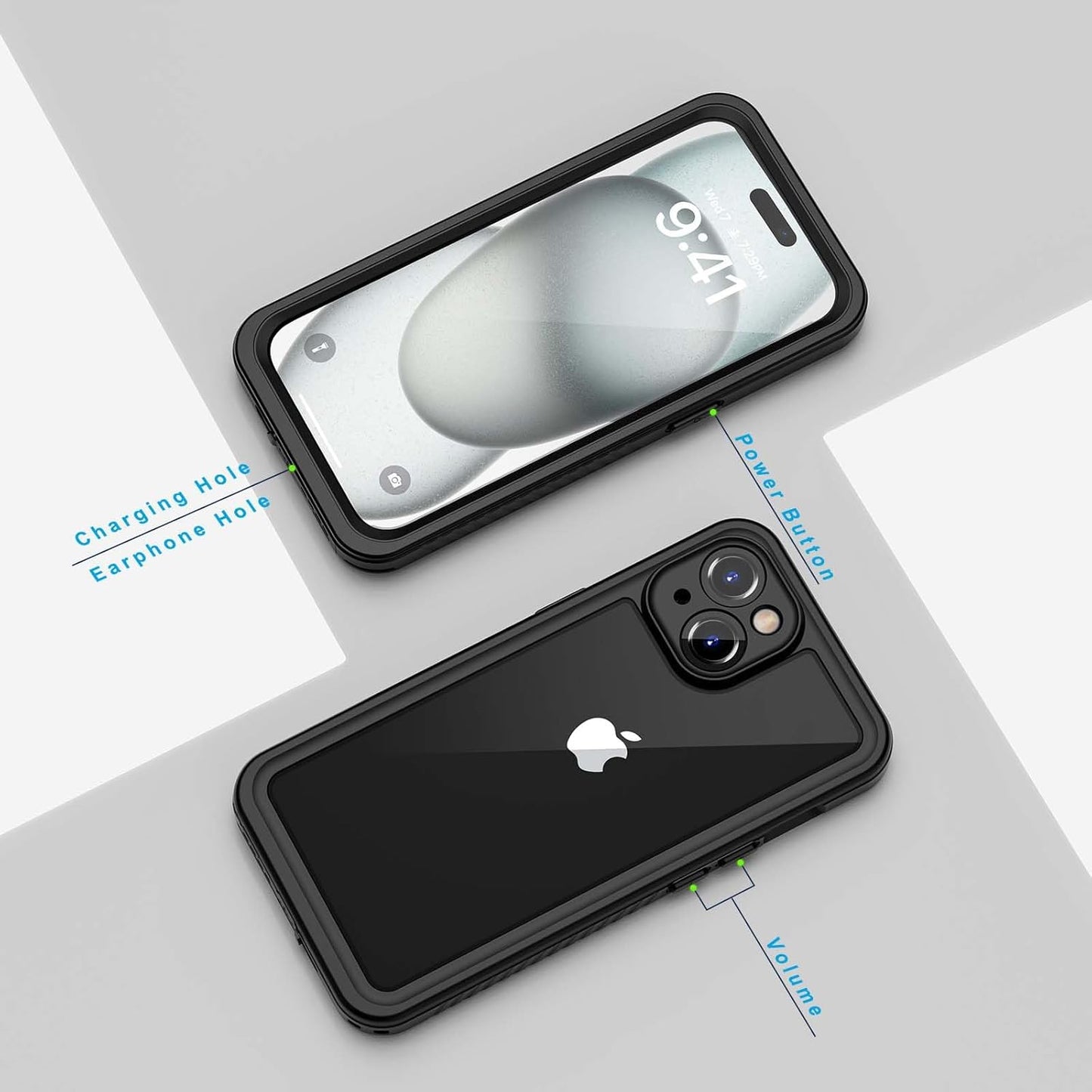 - IP68 Certified Waterproof : iPhone 15 Plus waterproof case, extreme safe even after 1000 times test of using underwater 6.6ft for 1 hour. NOTE: Please test the waterproof case for iPhone 15 Plus with the built-in waterproof paper towel before going underwater and make sure the front and back covers of the case are completely closed.