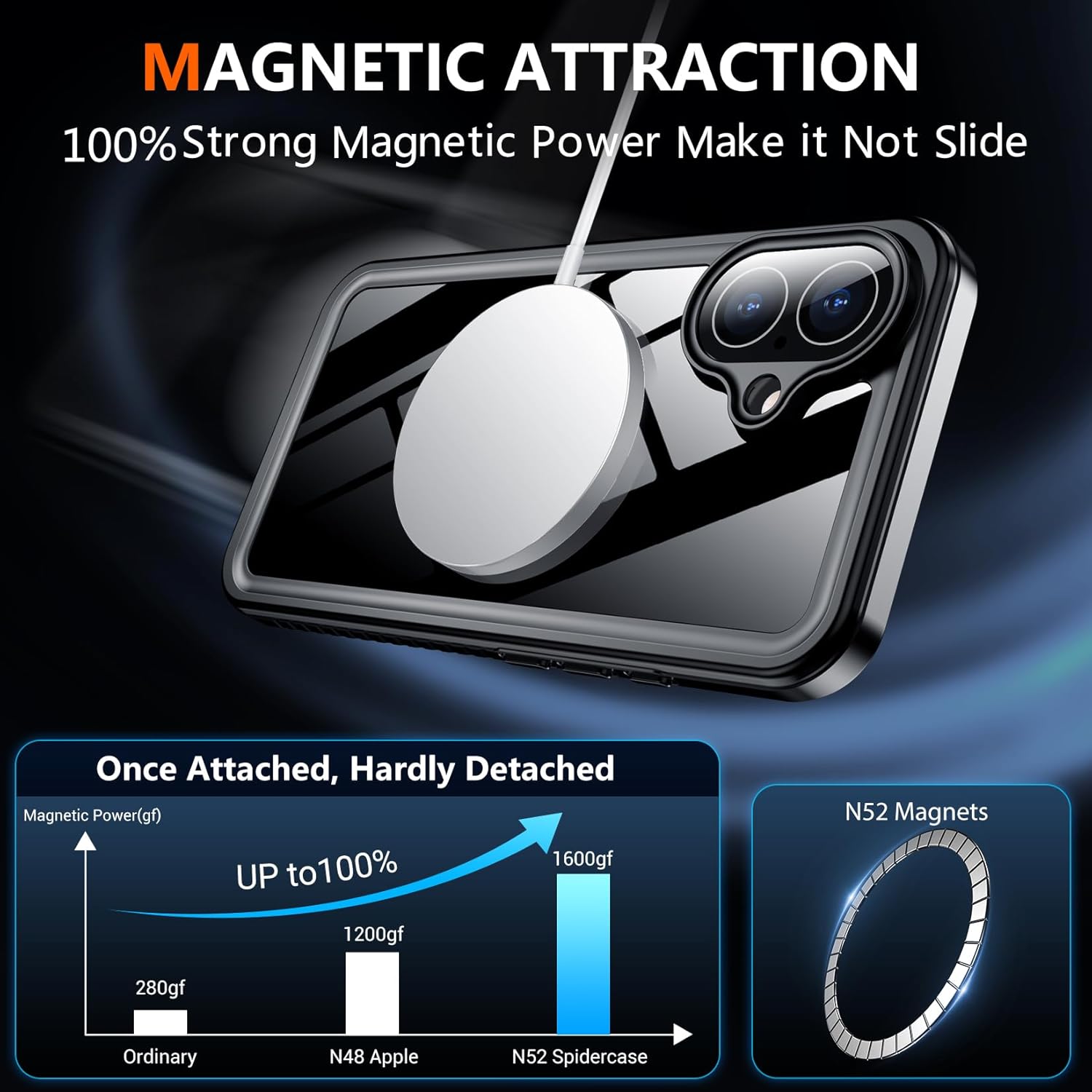- IP68 Waterproof: This iPhone 16 case is IP68-certified, and can protect your phone from water. It can survive depths of 6.6ft/2m underwater for up to one hour. This case is resistant to water, snow, dust, and is easily washable to keep it looking like new. Not only does this case offer optimal protection for daily use, but it is also a great choice applied in underwater activity or outdoor sports.