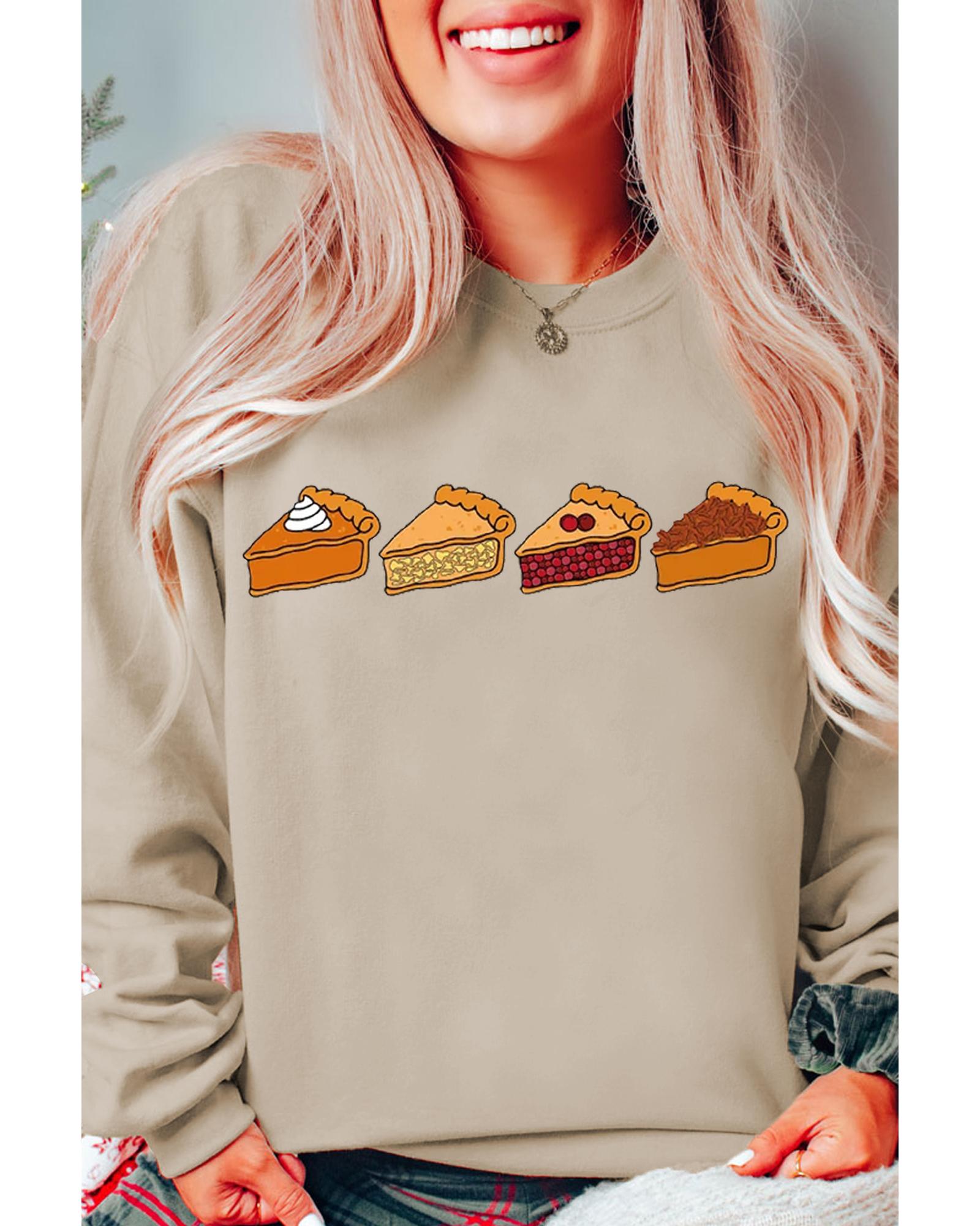 Khaki Thanksgiving Pie Print Drop Shoulder Sweatshirt - 2XL