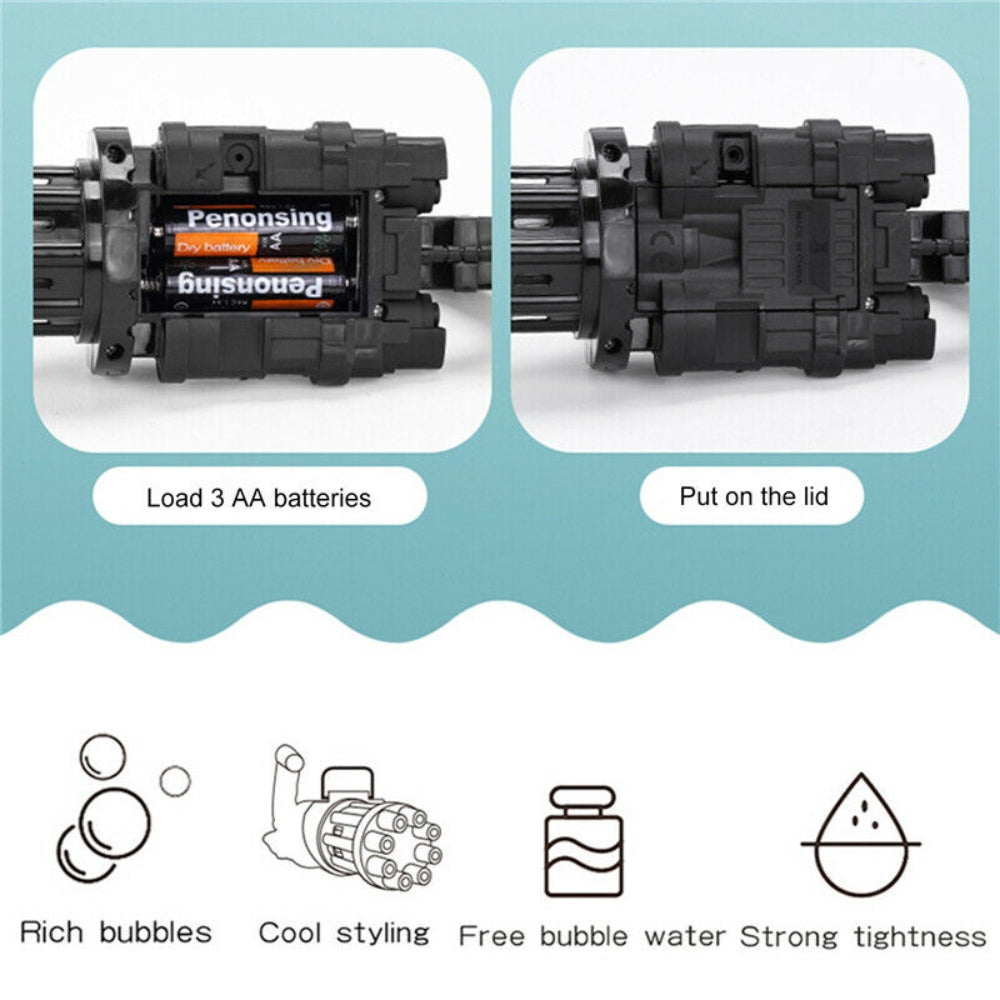Kids Toys Automatic Gatling Bubble Gun Summer Soap Water Bubble Machine