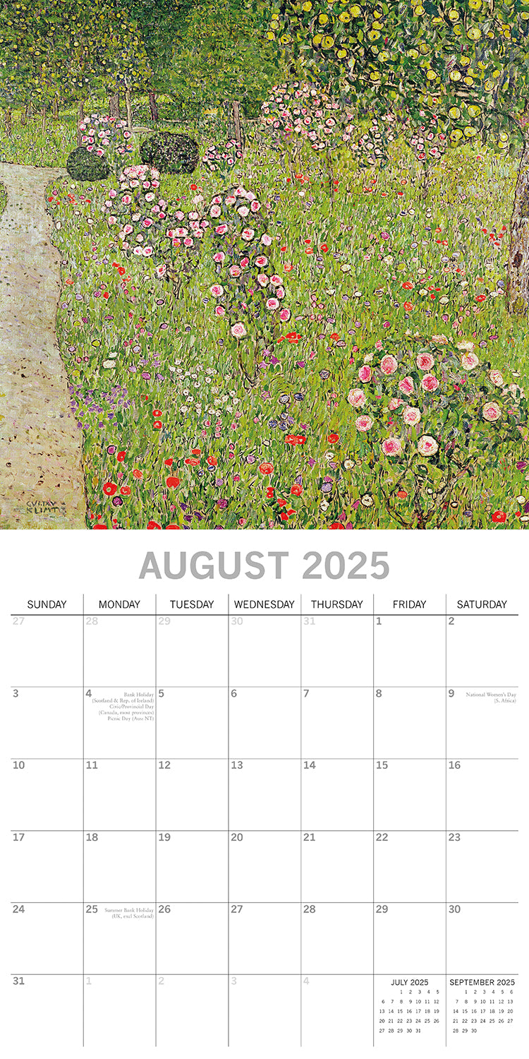 Klimt - 2025 Square Wall Calendar Arts Landscapes 16 Months Premium Planner Gift