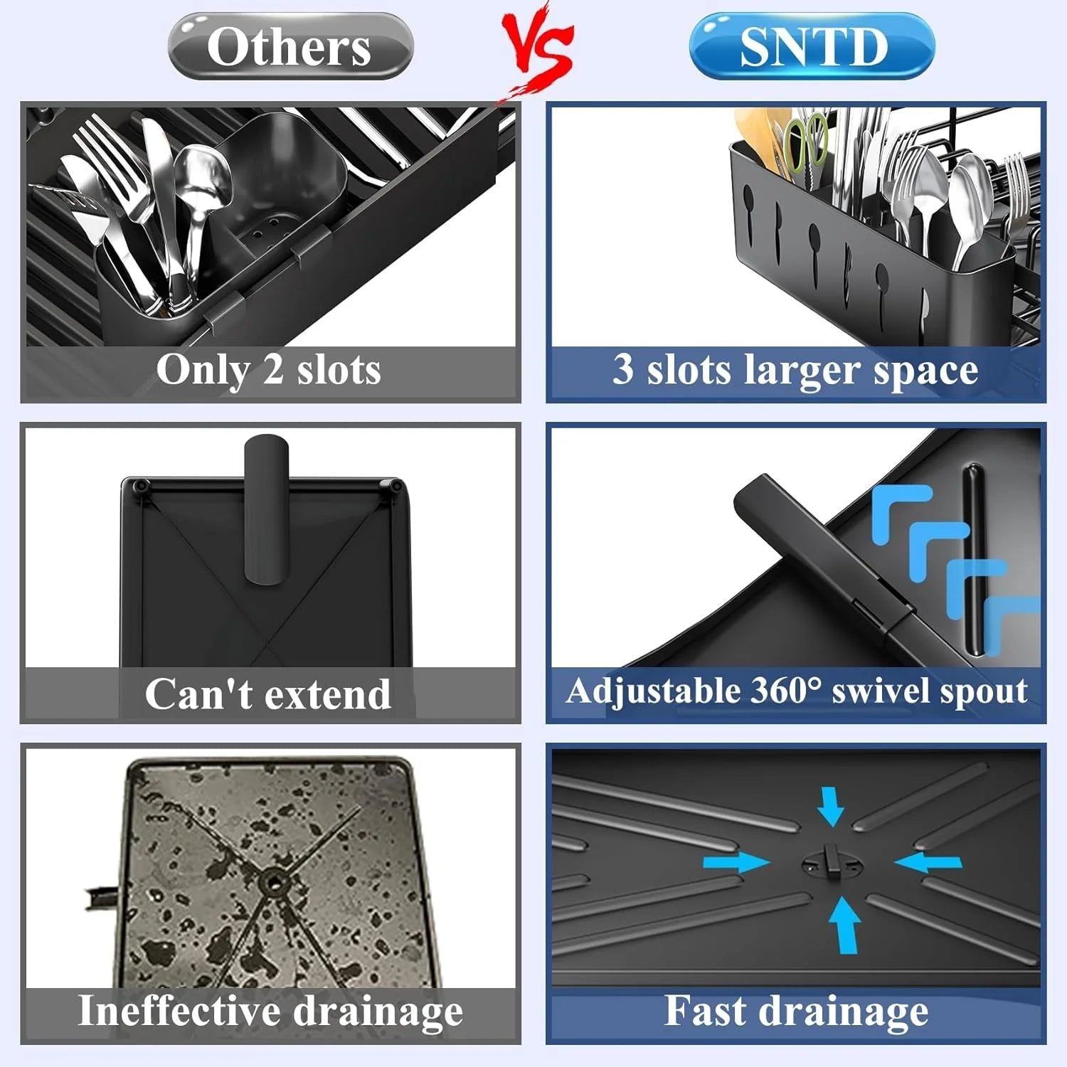 - Effortless Maintenance: Includes a drainboard to catch water, keeping your counters dry and clean without the hassle of manual drying.