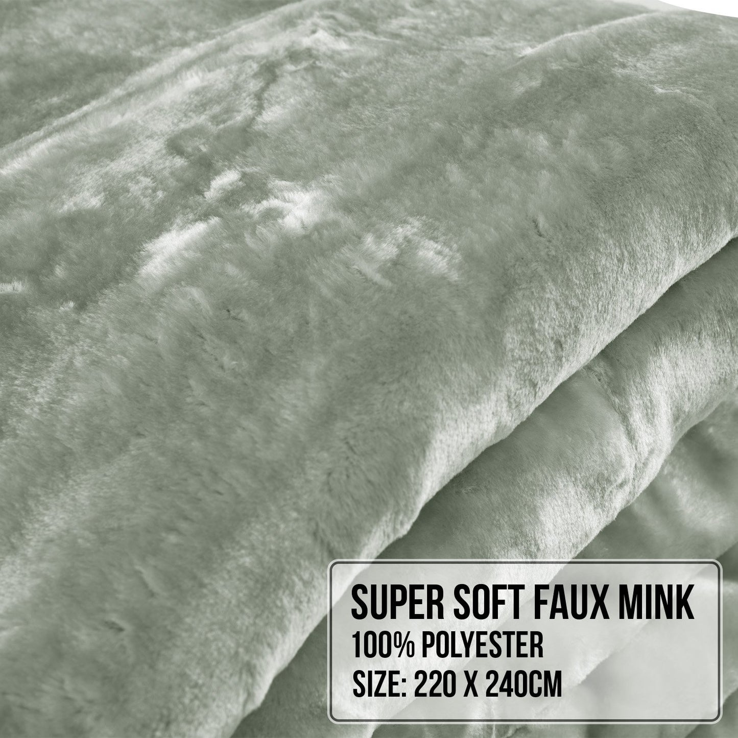 Laura Hill 800-GSM Mink Blanket Queen Size Double-Sided Soft Plush Bed Faux Throw Rug 220 X 240cm Heavy Sage