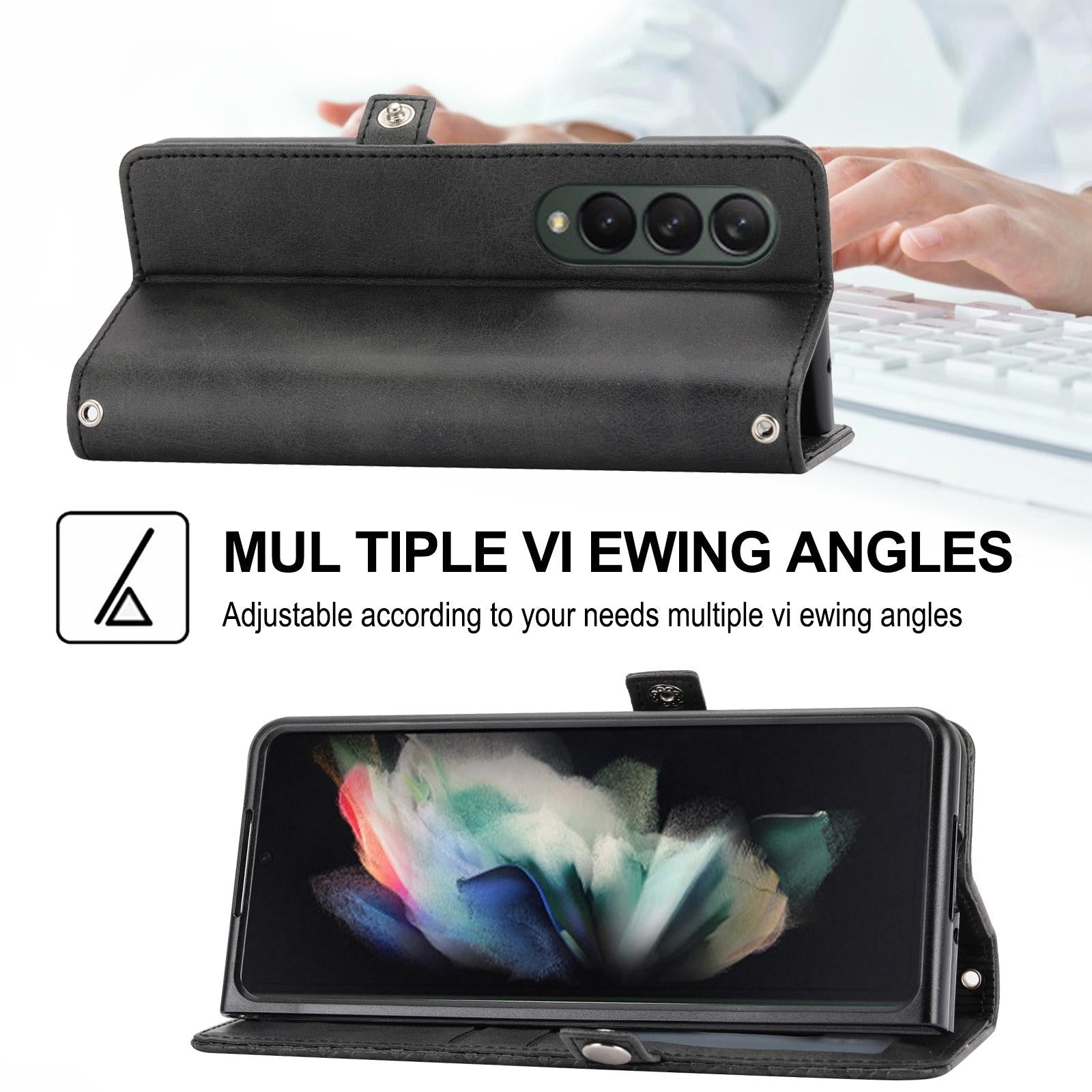 • 1 x Grid Texture Leather Phone Case with Lanyard for Samsung Galaxy Z Fold4