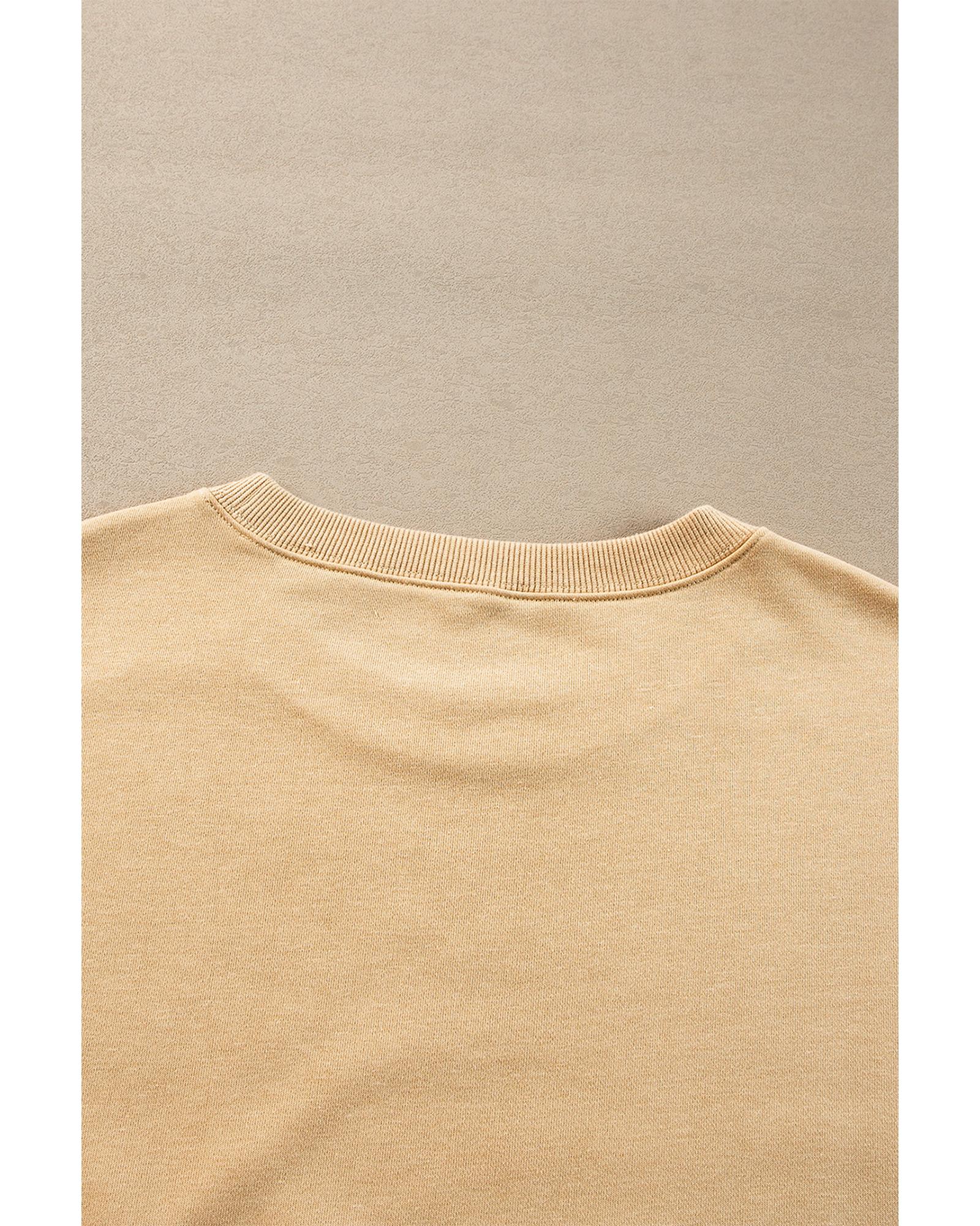 - Light French Beige Exposed Seam Drop Shoulder Round Neck Sweatshirt with Slits