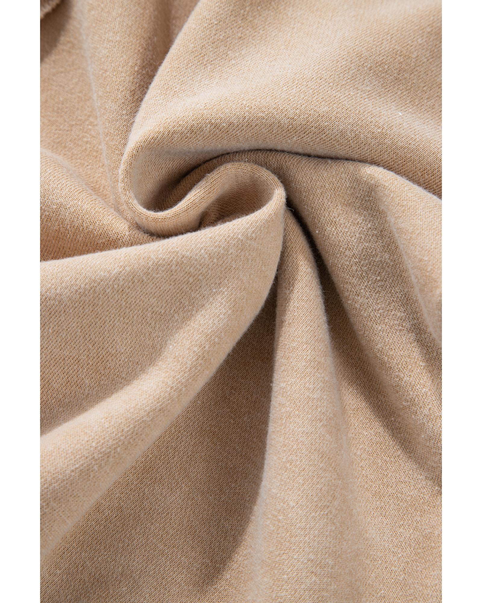 Light French Beige Solid Waffle Knit Patchwork Raglan Sleeve Sweatshirt - S