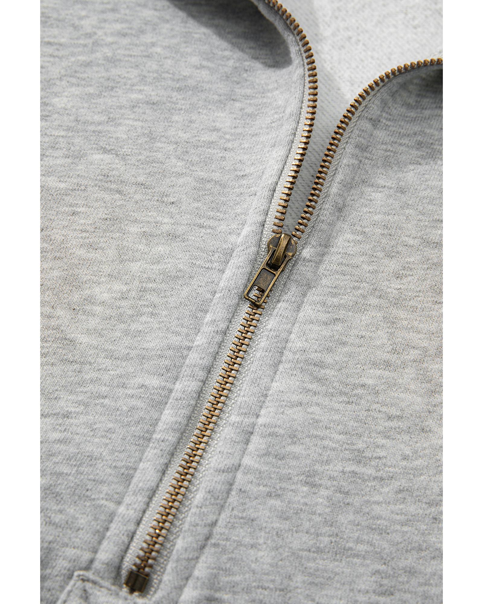 Light Grey Fleece Lined Half Zipper Kangaroo Pockets Loose Hoodie - M