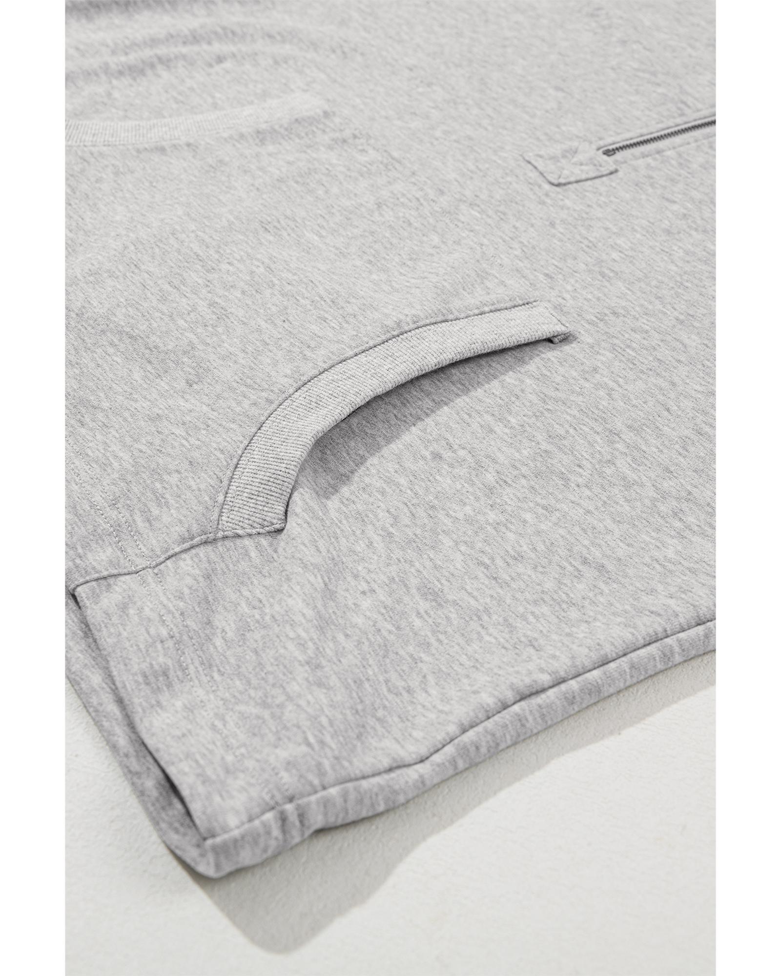 Light Grey Solid Kangaroo Pocket Half Zipper Oversized Hoodie - 2XL