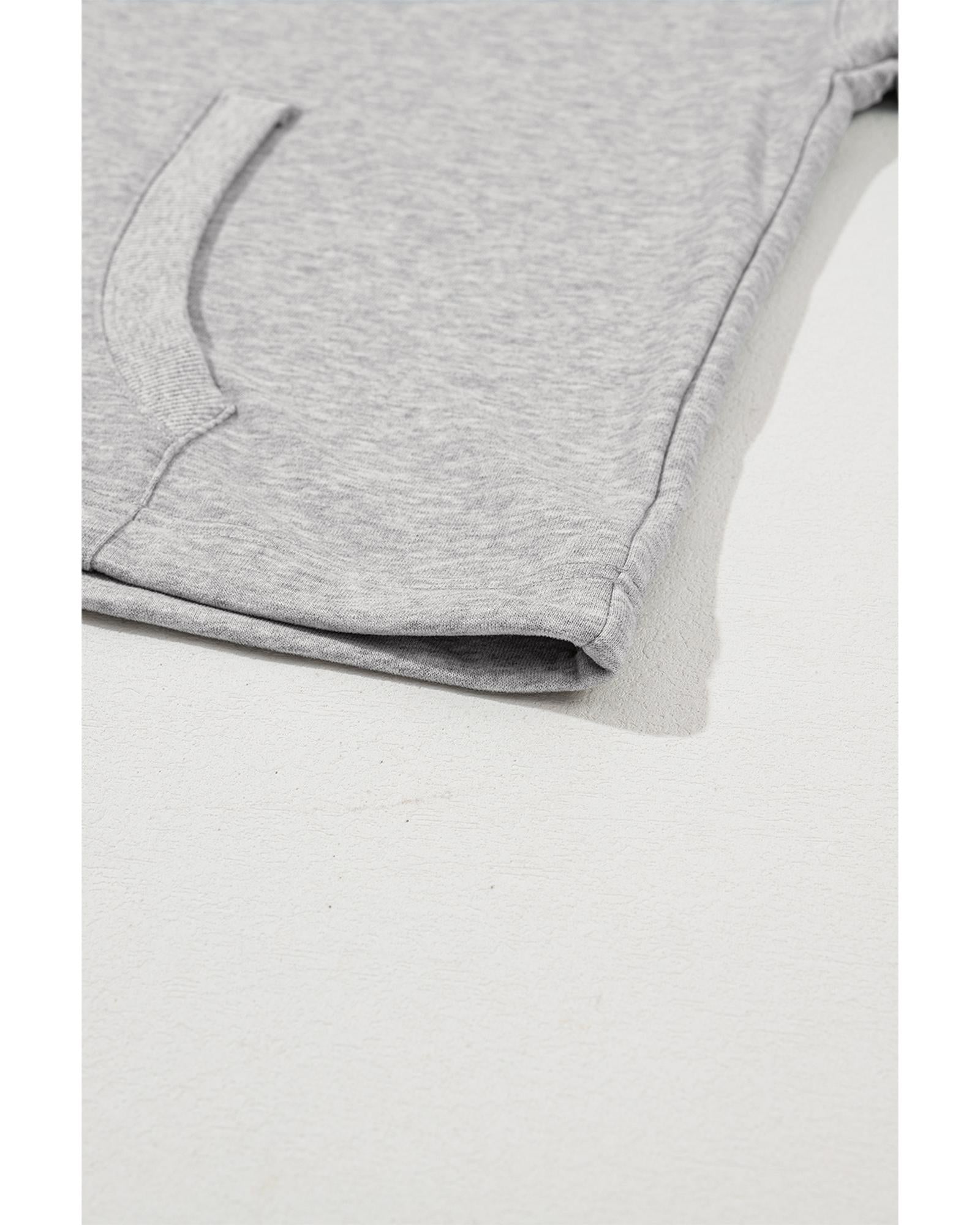 Light Grey Solid Kangaroo Pocket Half Zipper Oversized Hoodie - M