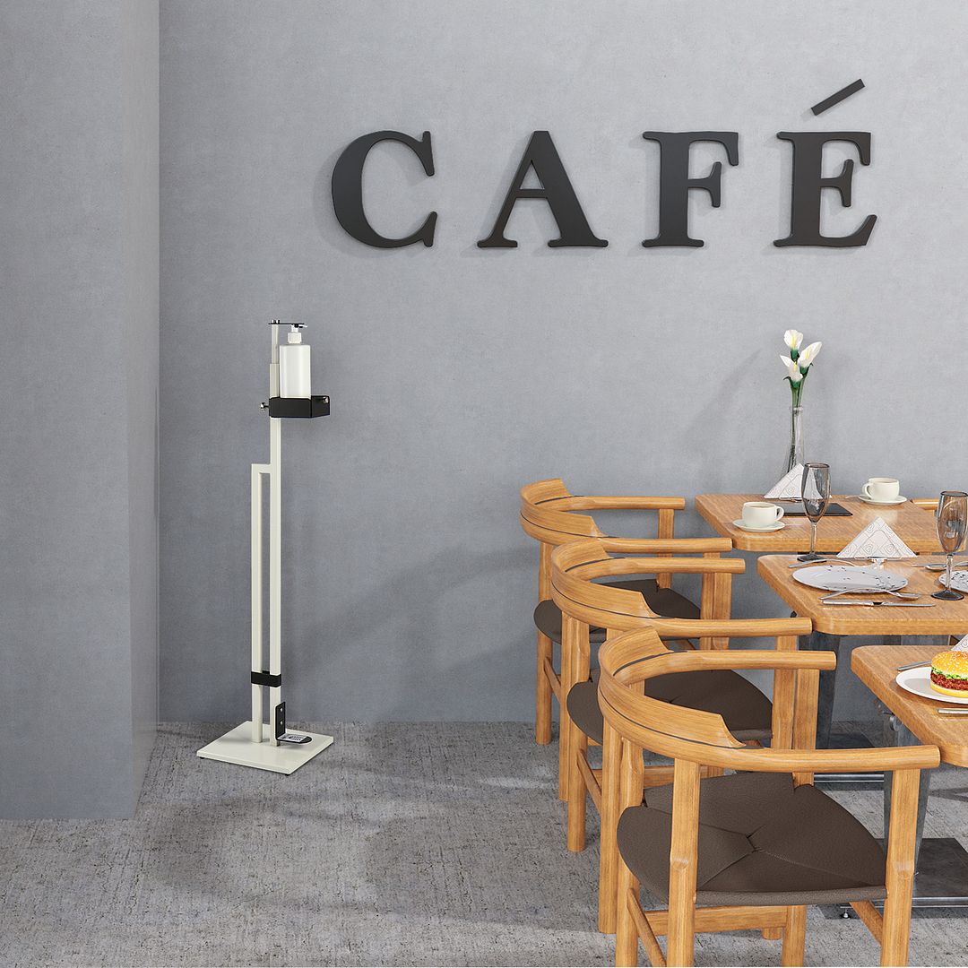 The Lirash Touch Free Hand Sanitiser Dispenser Station Floor Stand Foot Operated - White Black makes hand hygiene convenient and extremely easy to implement in both commercial and residential settings. With the flexibility of placing any sanitiser bottle you like, this stand is ideal to make sanitisation accessible within retail shops, workplaces, cafés, restaurants, libraries, medical centres, schools and more.