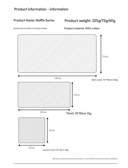 - 3D Waffle Weave: Elegant honeycomb texture enhances breathability and water absorption, providing a lightweight and elastic feel.