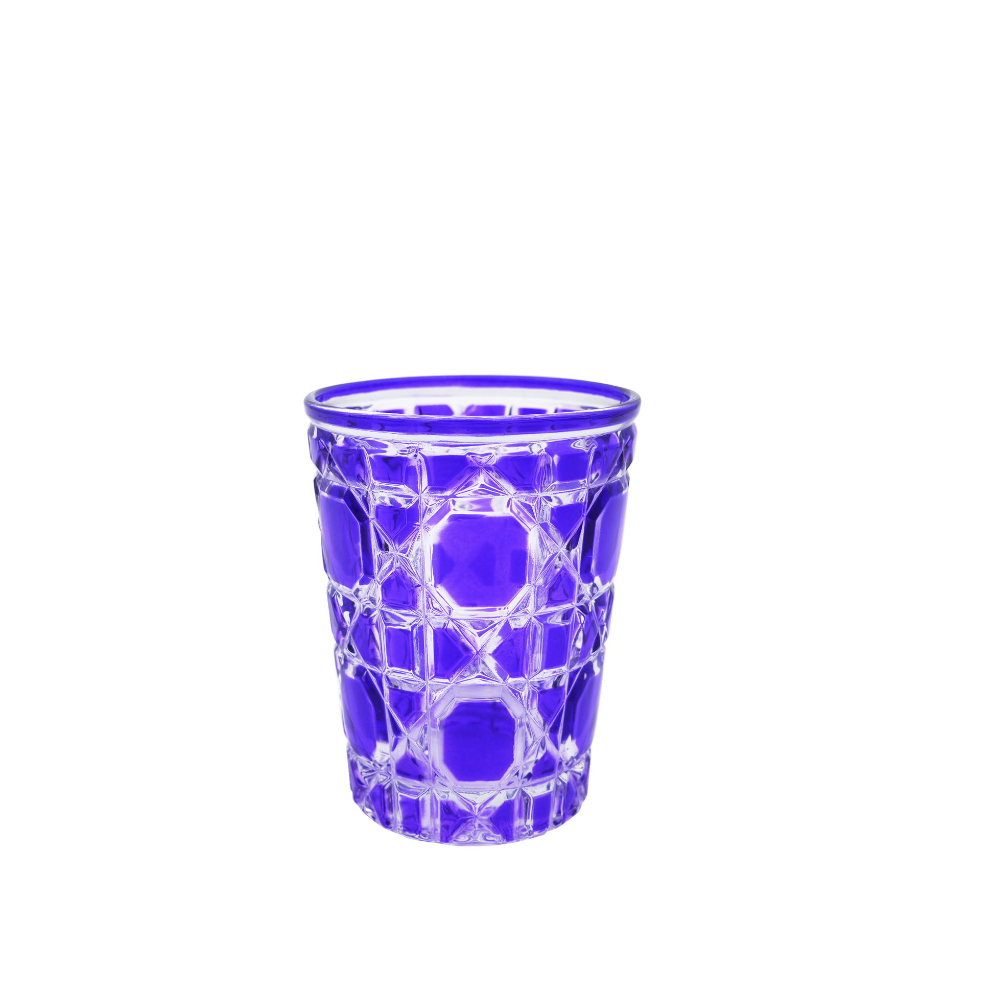 Exquisite craftsmanship, striking texture are the alluring qualities of this water glasses. The linear silhouette of the pieces in glass is hand decorated by hand with a superb series of geometric patterns juxtaposed to create an enlivening surface, highlighted by the different colors that give each glass a distinct character.