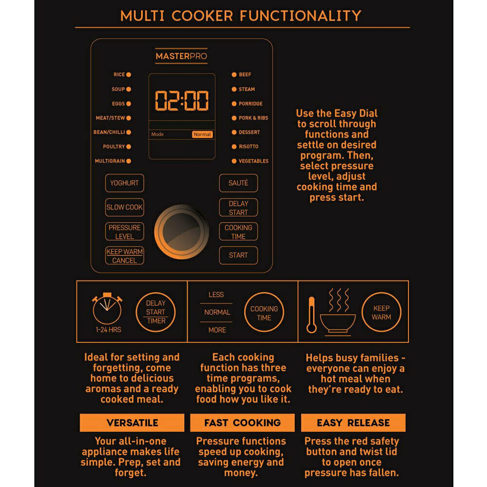 Prep, set and forget. This MasterPro Multi Cooker & Air Fryer lives up to its name as the Ultimate All In One appliance to keep you cooking all day long (even when you're busy.) It comes with two lids to allow you to make anything from soups to risottos to yoghurt real quick with one touch of a button. It also transforms into an air fryer so what more can you ask for?