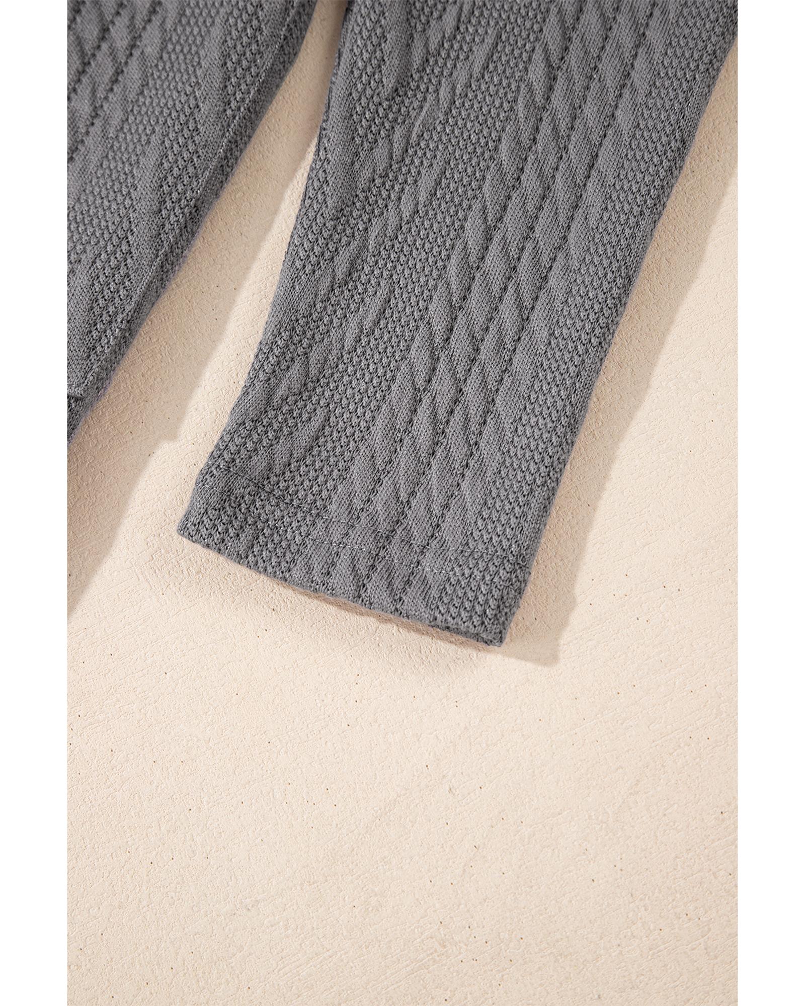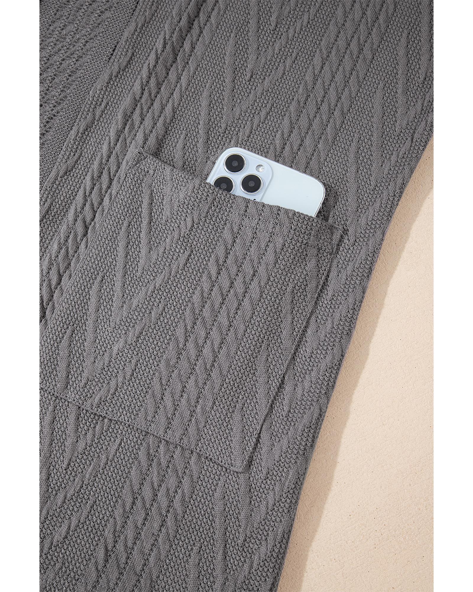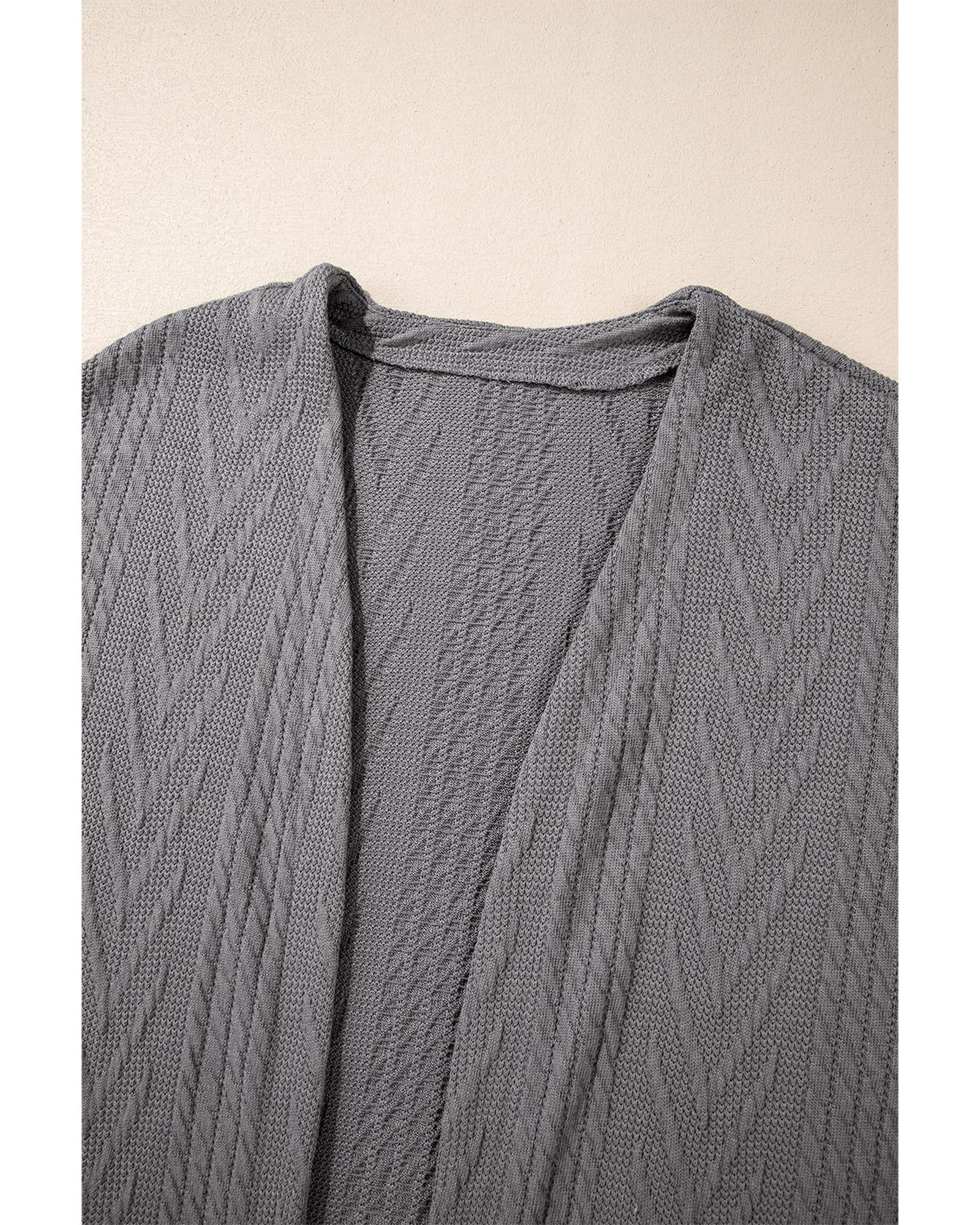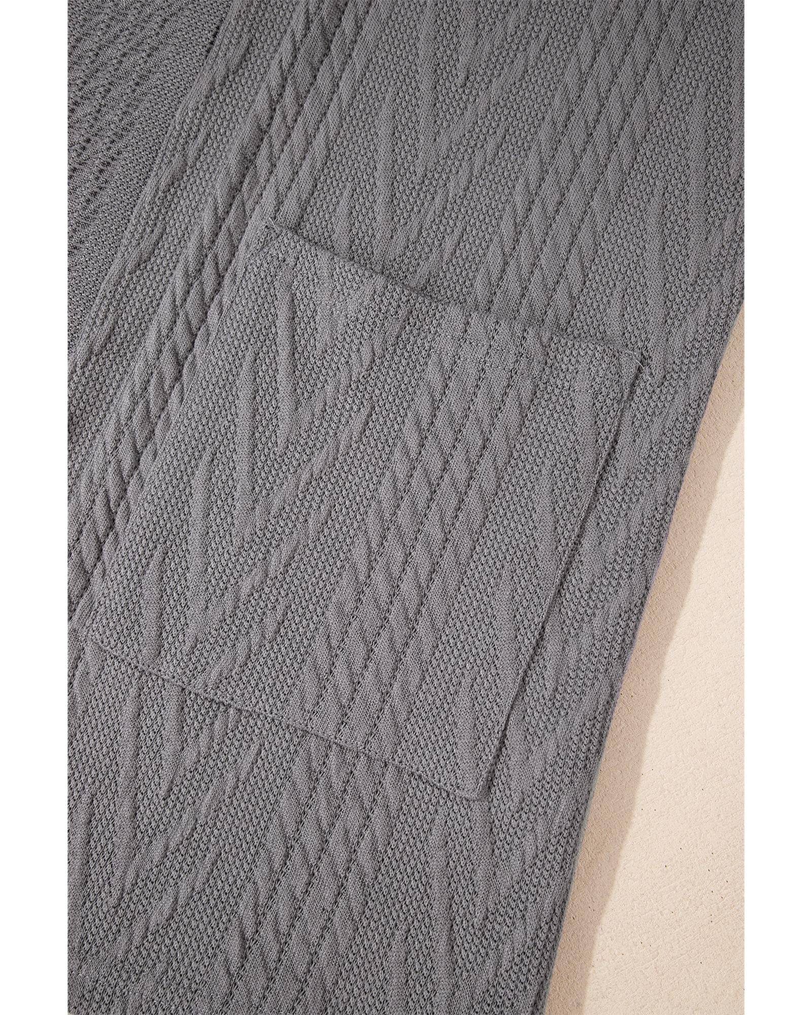 Medium Grey Solid Textured Open Front Cardigan with Pocket - S