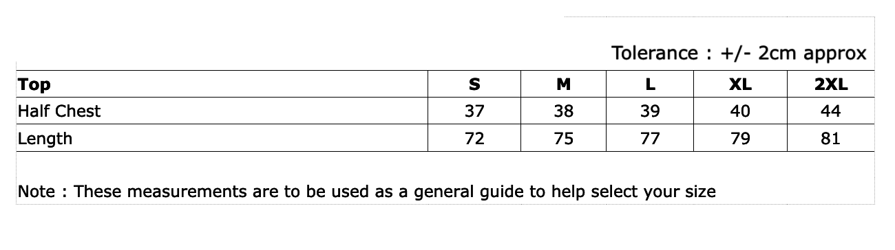 Chest (armpit - armpit) | 33cm | 35cm | 37cm | 39cm | 41cm | 43cm |