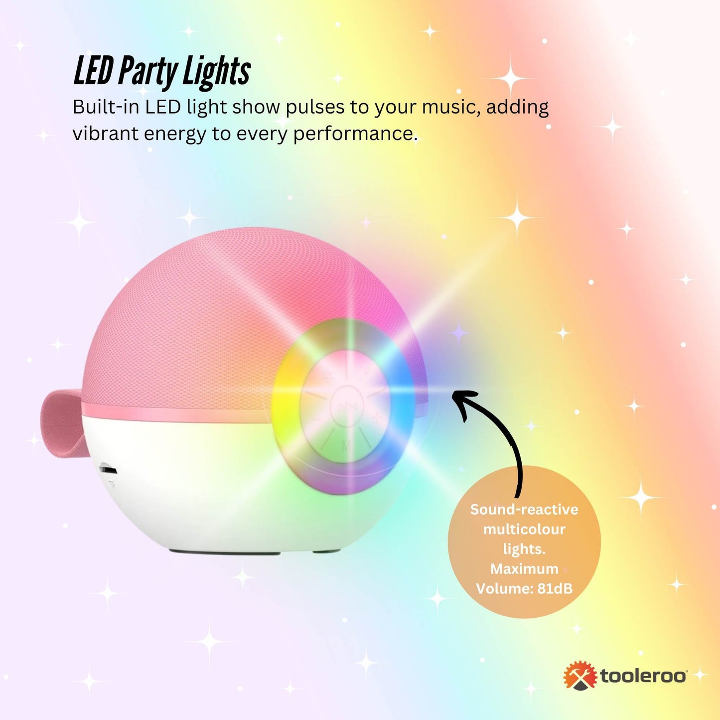 - LED Party Lights – Built-in LED light show pulses to your music, adding vibrant energy to every performance.