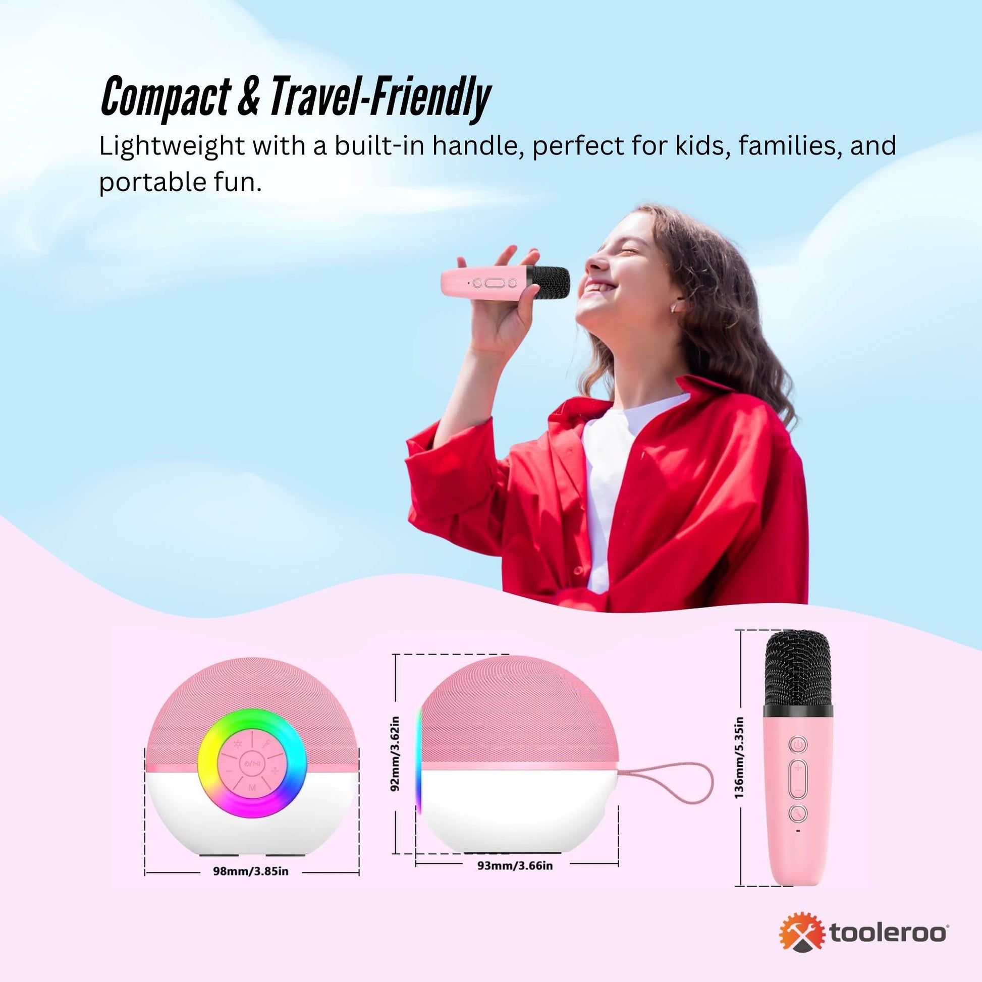 Mini Karaoke Machine and 2x Wireless Microphones Portable Bluetooth Speaker Pink