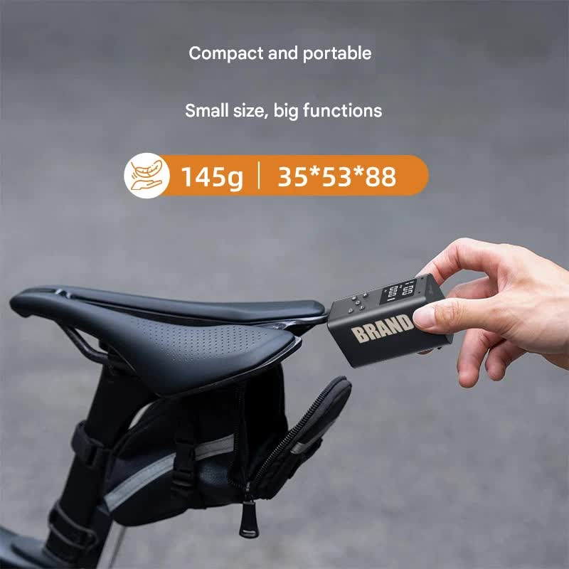 Stay prepared for any inflation needs with our Mini Portable Electric Air Pump. This compact and powerful air pump offers fast inflation with real-time pressure measurement. It is suitable for inflating bicycle tires (700*25C tire from 0-80PSI in less than 50s), as well as basketballs, footballs, and other inflatables.