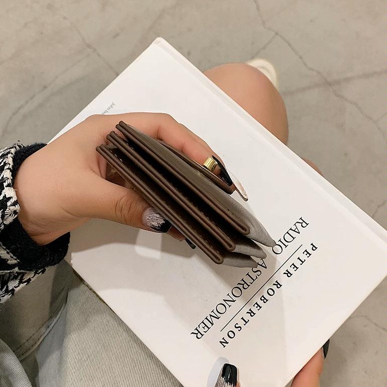 Mini Retro Lock Coin Purse Multi Slot Pu Leather Card Bag - Coffee