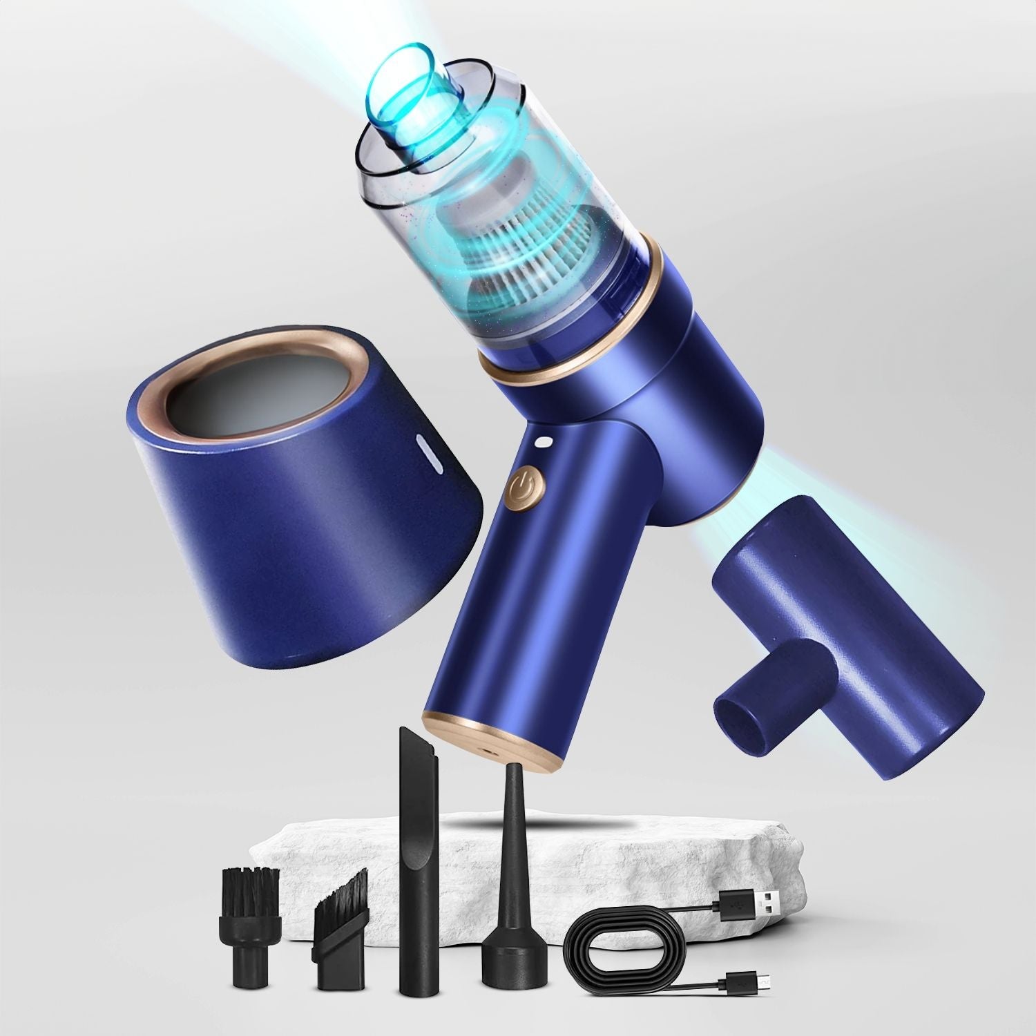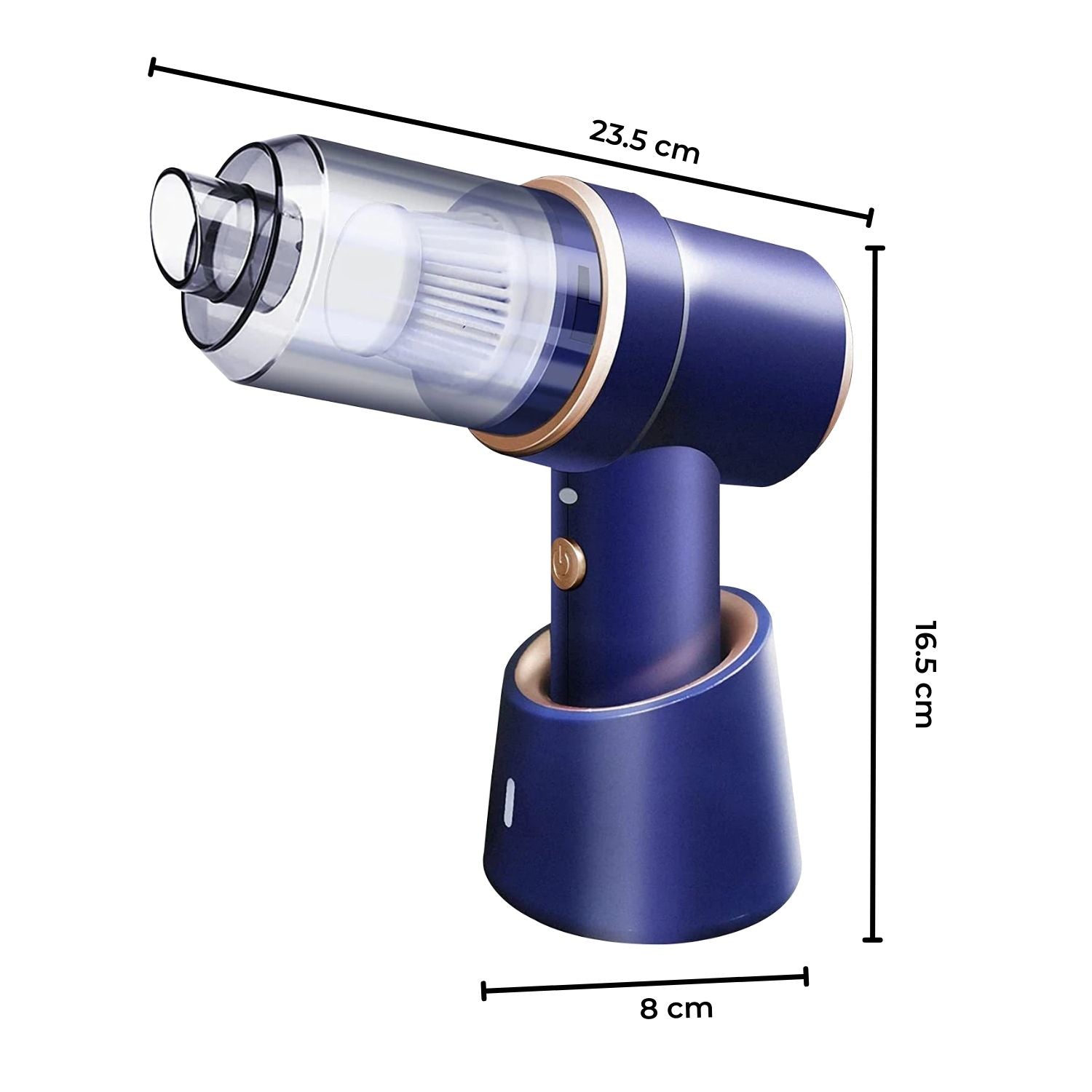 MIRAKLASS 45000RPM 7.8V Rechargeable Cordless Air Duster and Car Vacuum Cleaner with Charging Base (Navy Blue)