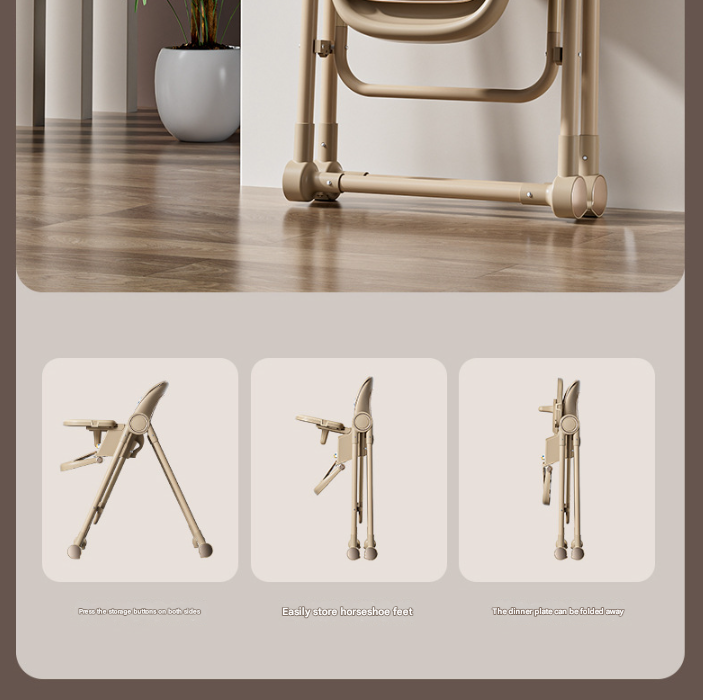 Modes: High Chair, Rocking Chair, Folded Storage
