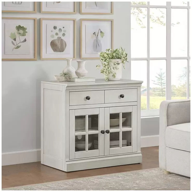 - Elegant Design & Craftsmanship: Features a hand-applied, multi-step finish on birch veneers, enhancing its classic appeal with crown and base moulding that complements any room decor.