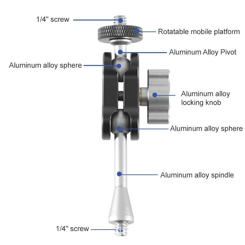 • Double-headed 1/4 inch screw with a locking knob for secure and quick operation