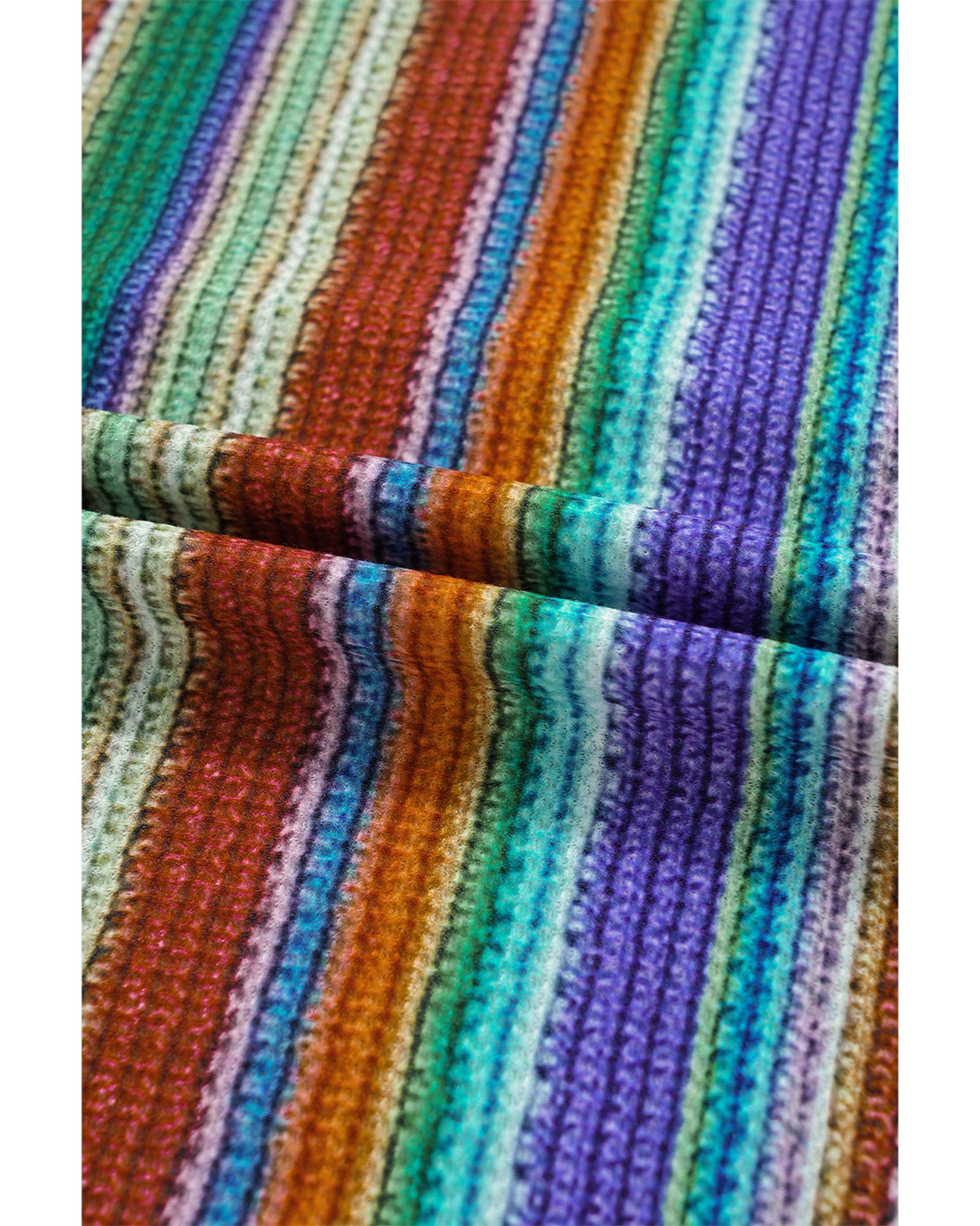 Multicolour Striped Pattern Twist Hem Short Sleeve Top - M