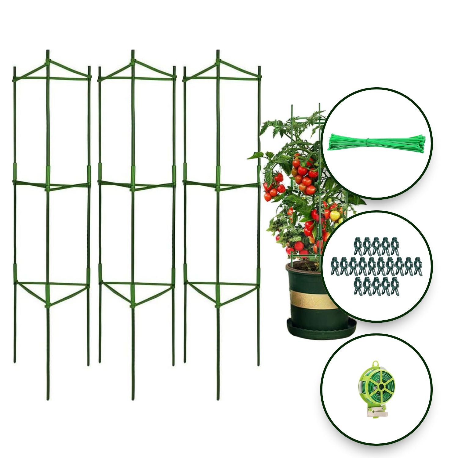 NOVEDEN 3 Sets Tomato Supports Cages with 20 Clips 50 Twist Tie and 30meters Rope (Green)