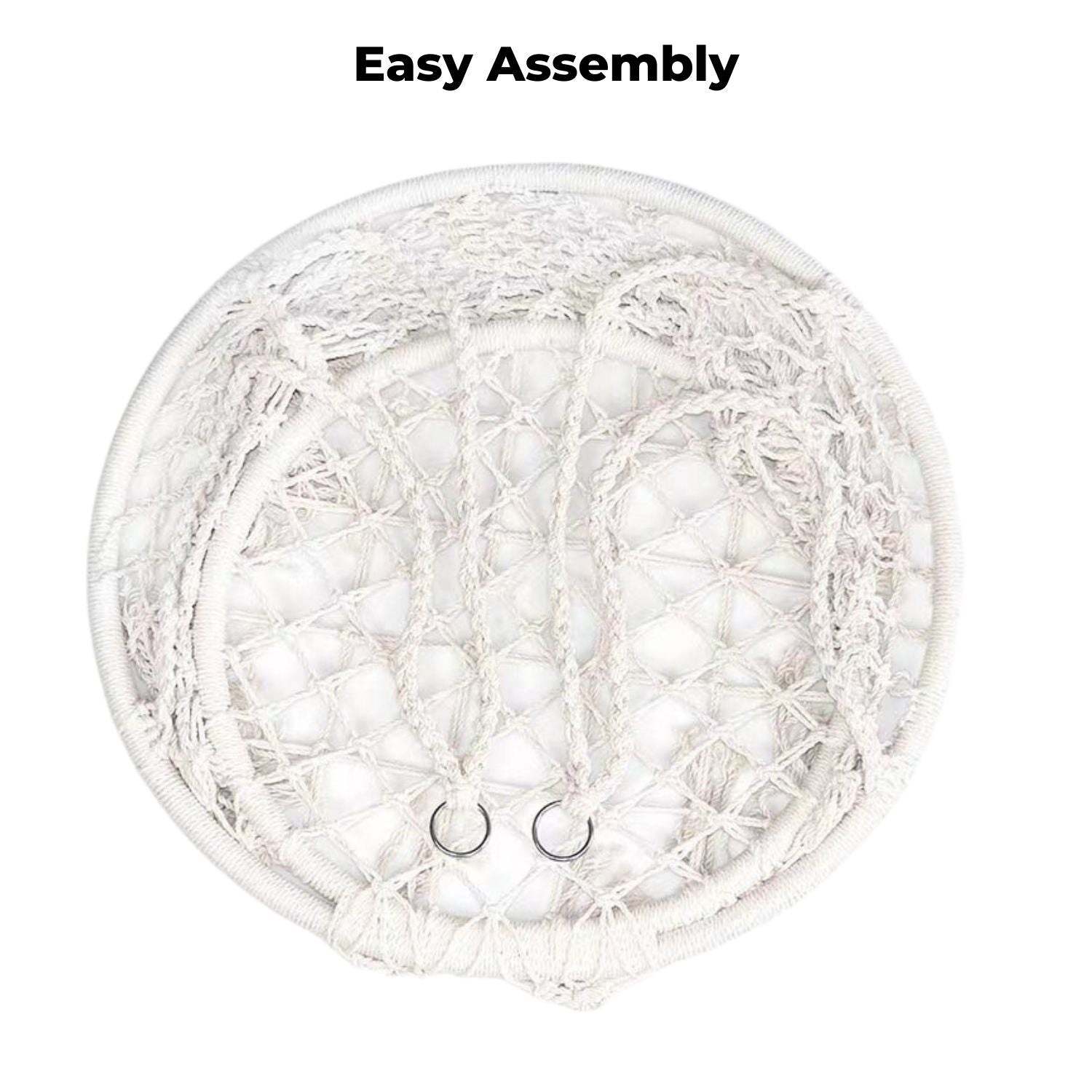 Enjoy hassle-free setup with easy assembly, while the high-quality material ensures durability. The hammock chair is crafted for long-lasting performance and comfort. -