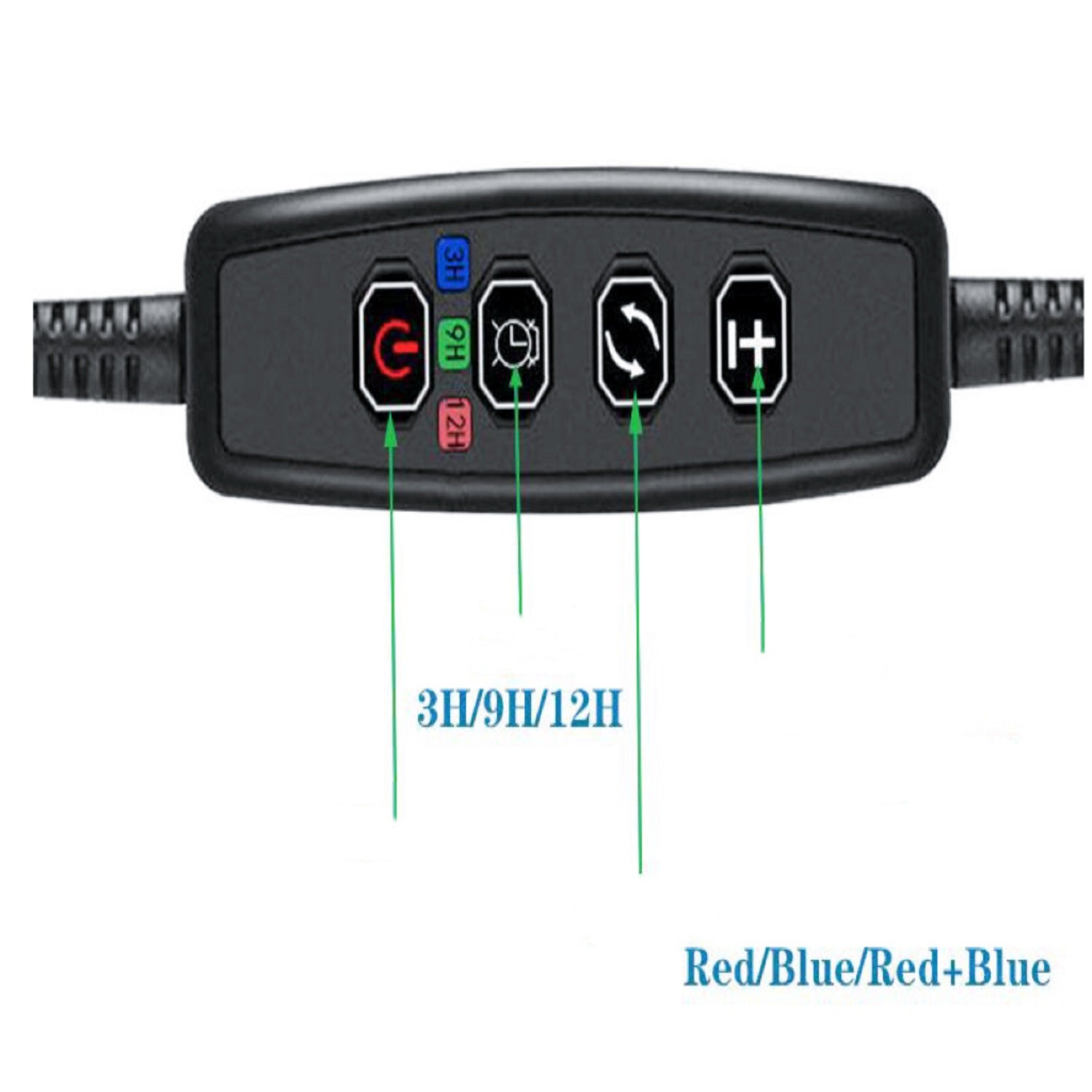 Spectral Modes: 3 color modes(Red Light, Blue Light & Mixed Light) and 10 bright adjustable modes