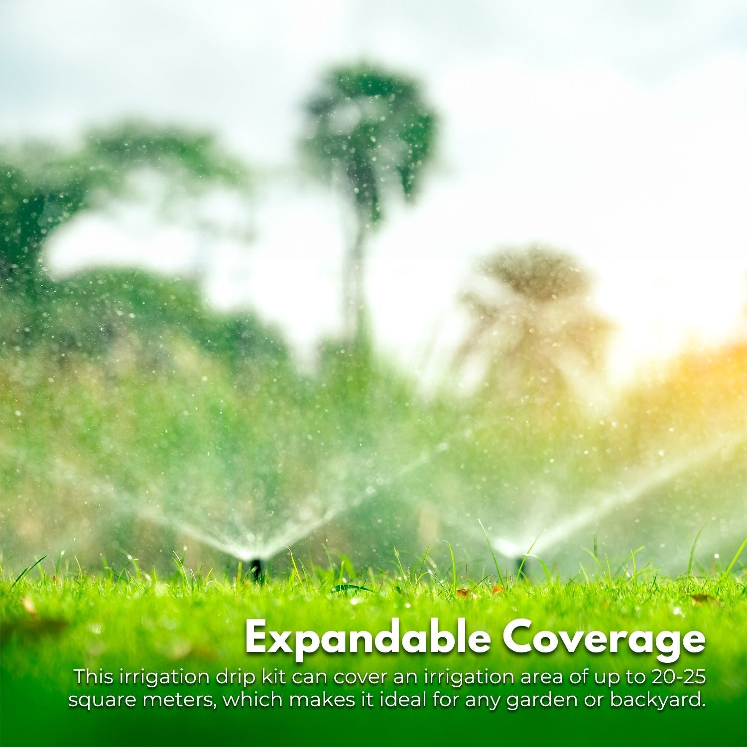 Expandable Coverage: This irrigation drip kit can cover an irrigation area of up to 20-25 square meters, which makes it ideal for any garden or backyard.