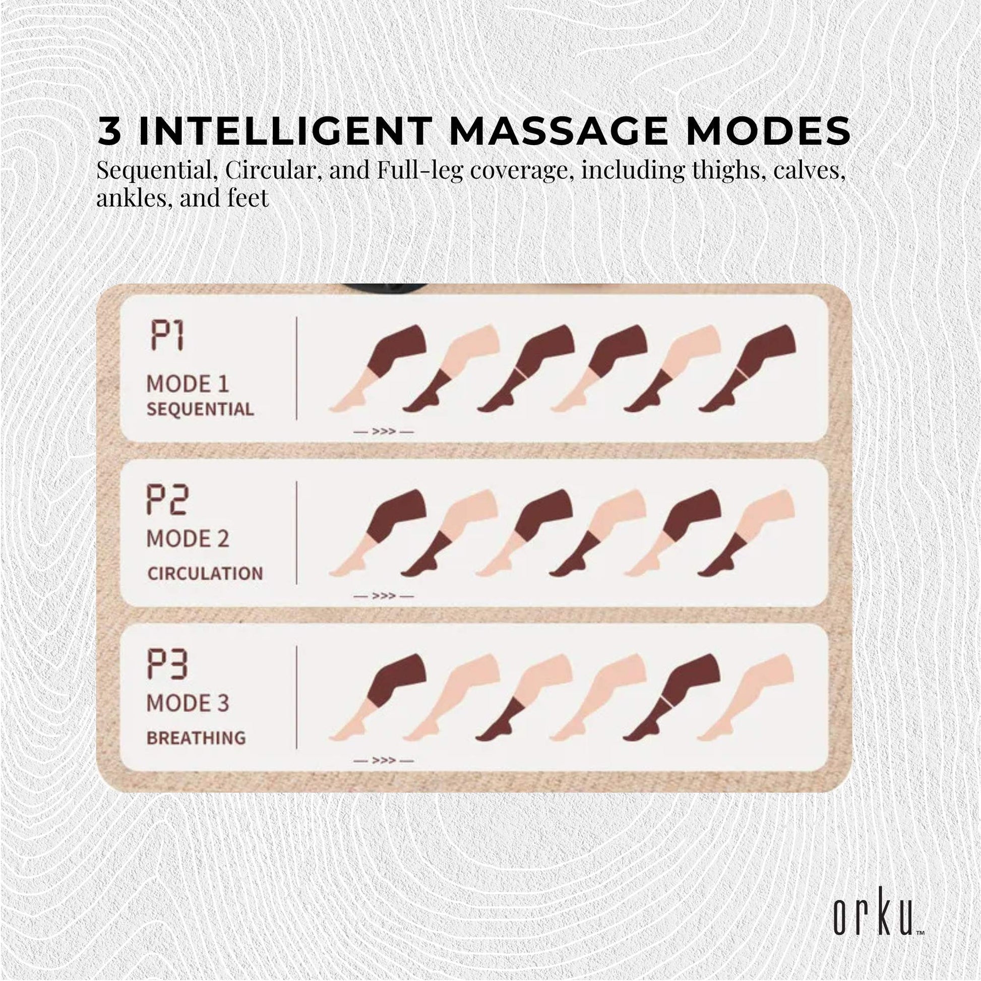 - 3 Intelligent Massage Modes: Sequential, Circular, and Full-leg coverage, including thighs, calves, ankles, and feet