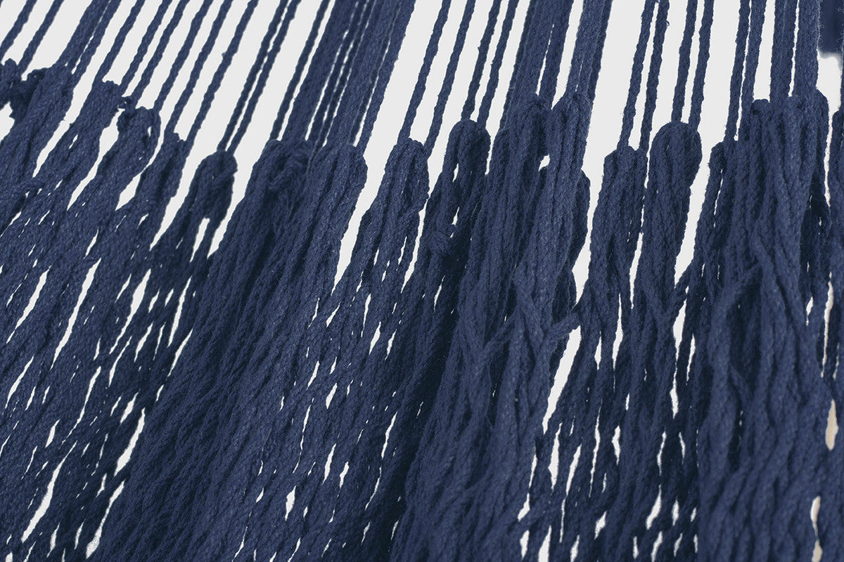 Outdoor undercover cotton Mayan Legacy hammock with hand crocheted tassels King Size Blue
