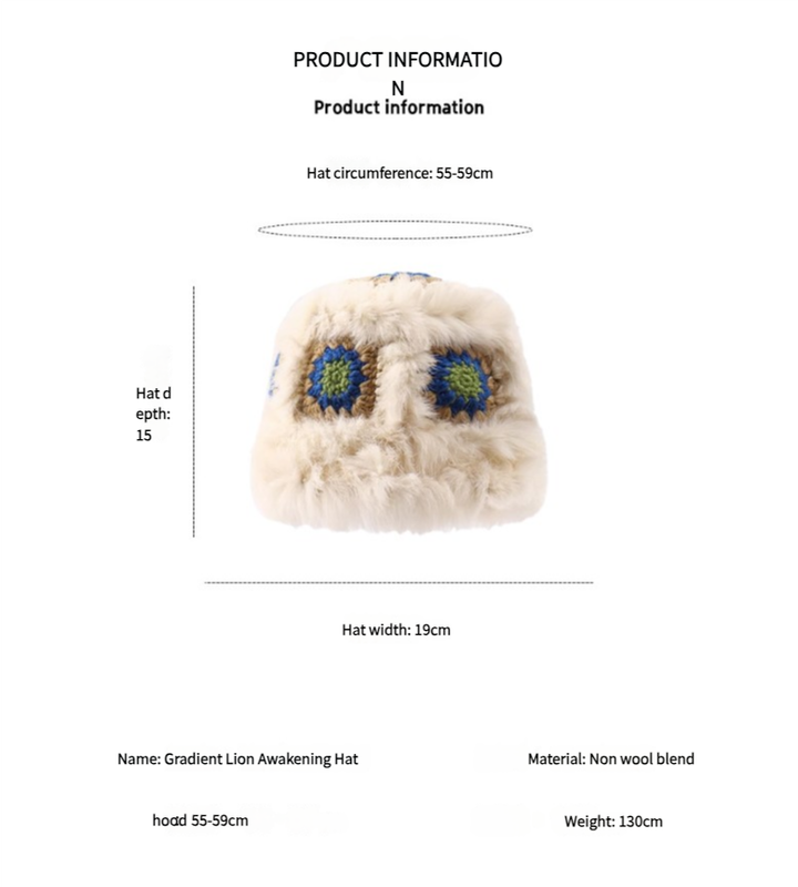 Plush Floral Bucket Hat,Warm Crocheted Winter Hat in White yellow-Hat circumference: 56-60cm