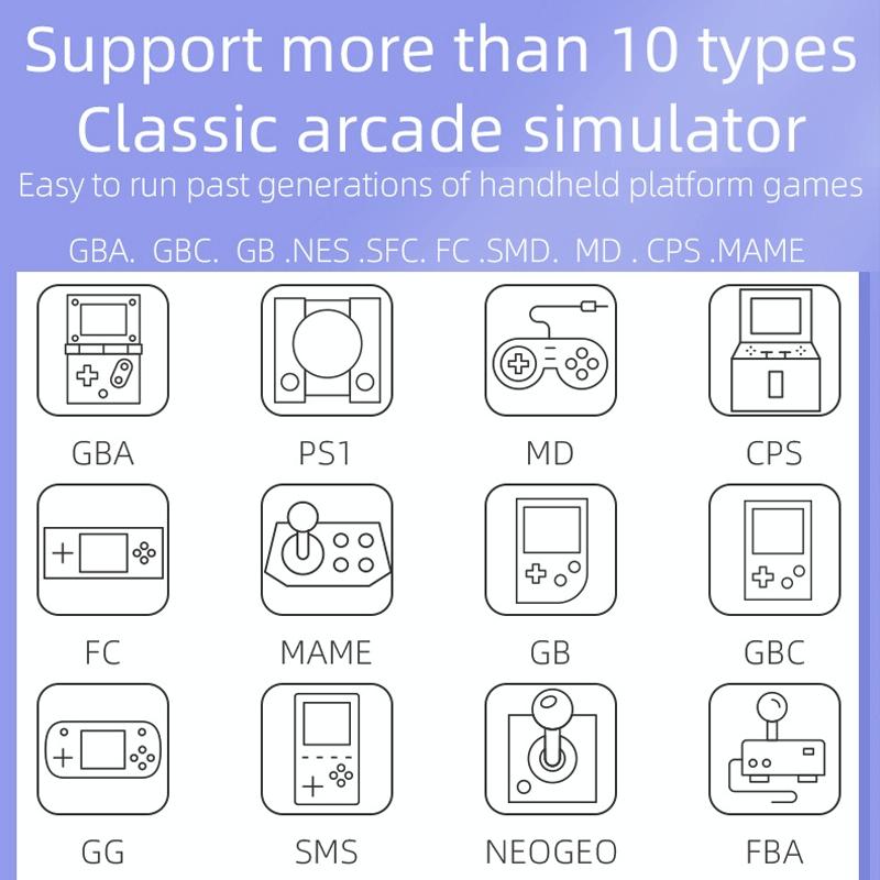 • Game Format: Gba, Gbc, Gb, Nes, Sfc, Fc, Md, Cps, Mame, Smd, Smc, Gg, Sms, Neogeo, Fba