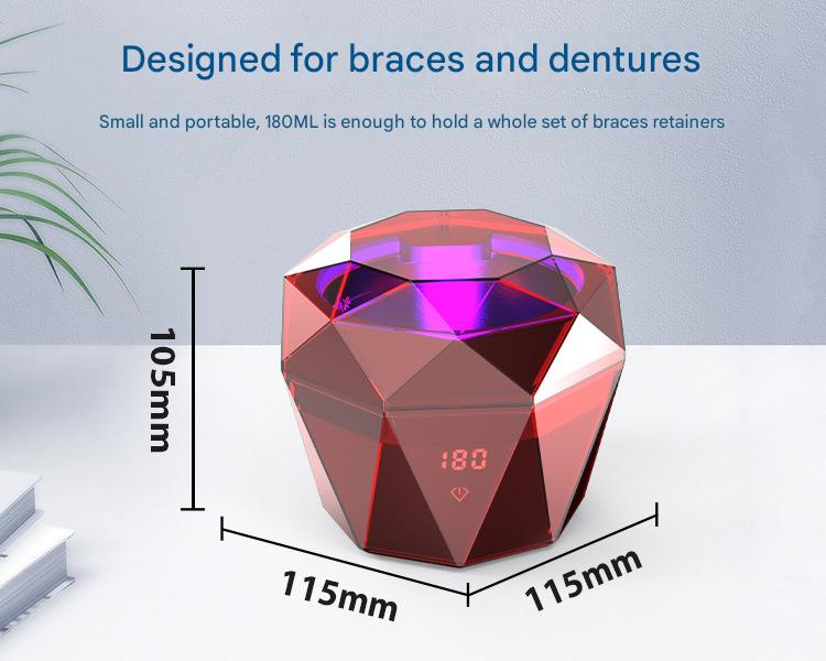 - 180ml Stainless Steel Tank: Perfectly sized for a full set of dentures, aligners, retainers, jewelry, and other small items.