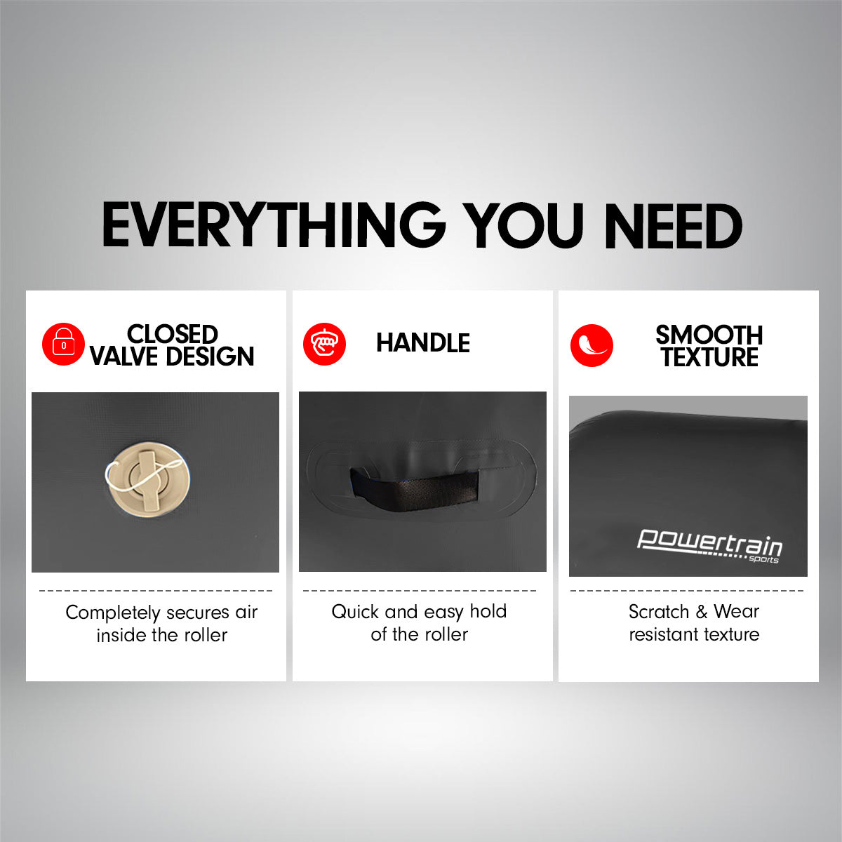 Powertrain Sports Inflatable Gymnastics Air Barrel Exercise Roller 120 x 75cm - Black