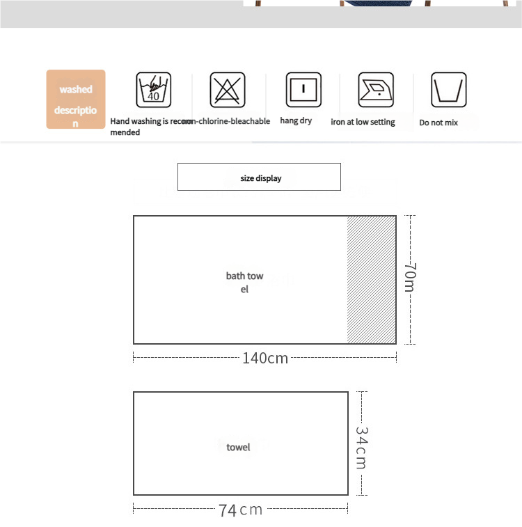 - Complete Set: Includes two hand towels (34x74cm) and one bath towel (70x140cm)