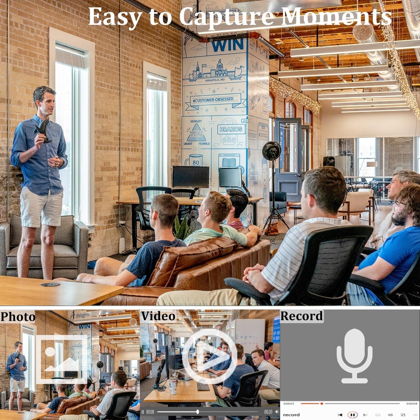 • Loop Video Recording Options: 3, 5, 10, or 15 Minutes