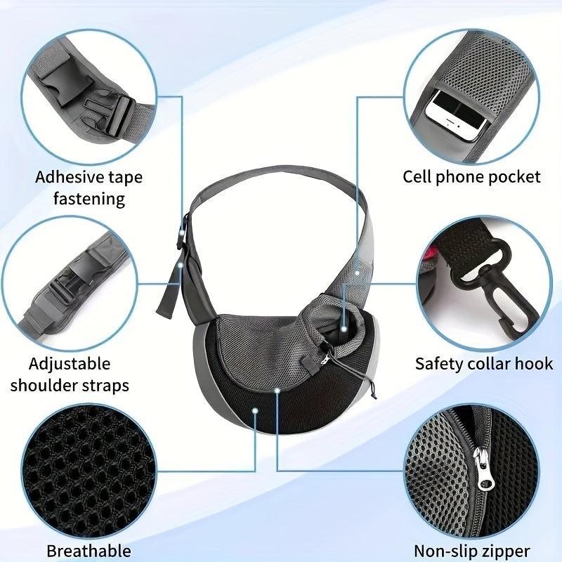 This Breathable Pet Carrier Sling Bag is perfect for cat and dog owners on the go. Crafted from durable Oxford fabric and featuring a breathable mesh design, it provides a comfortable and secure environment for your pet. The adjustable shoulder strap and lightweight construction make it easy to carry, while the secure closure ensures your pet's safety during travel or walks.