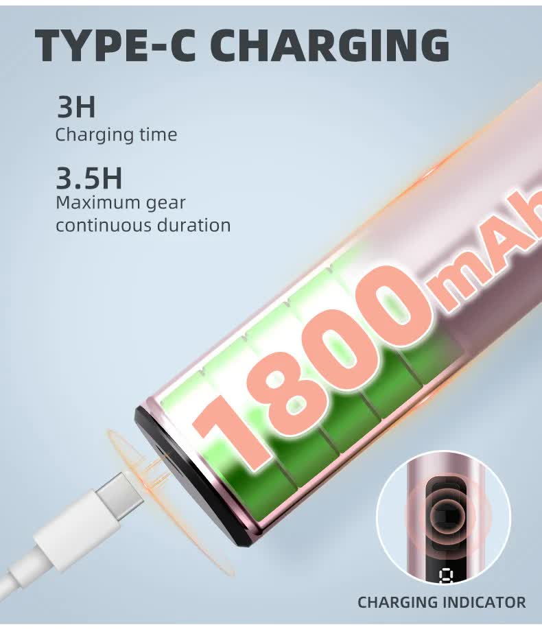 - Rechargeable with Type-C Charging: Equipped with a Type-C cable, the device charges in 2.5 hours for up to 50 minutes of use. Charging indicator lights flash white during charging and remain steady when fully charged.
