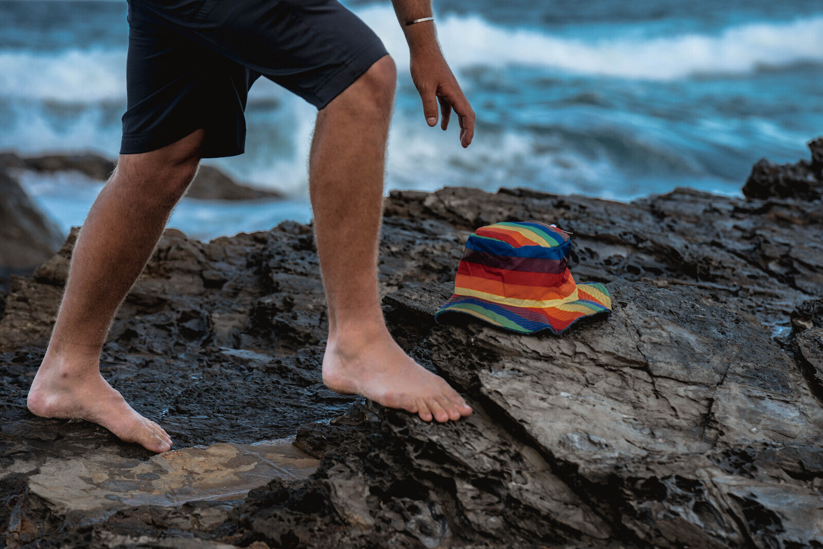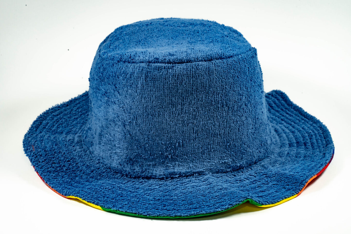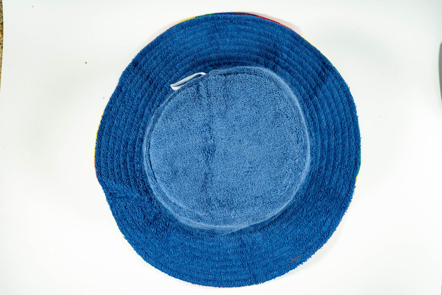 Look daggy and comfy on your next driving, fishing, camping, lawn mowing or even a walking session in this rainbow reversible terry towelling bucket hat!