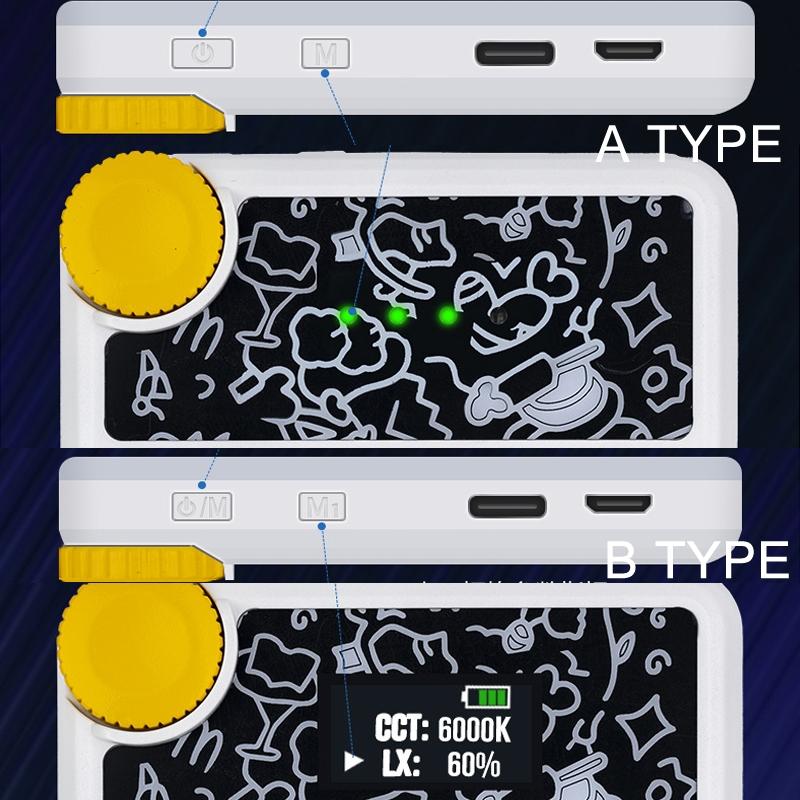 • Dual Input Charging Port: The mini photography light supports both Type-C and Micro-B charging ports (Mirco-B cable not included) and has a built-in 2000 mAh battery for long-lasting use.