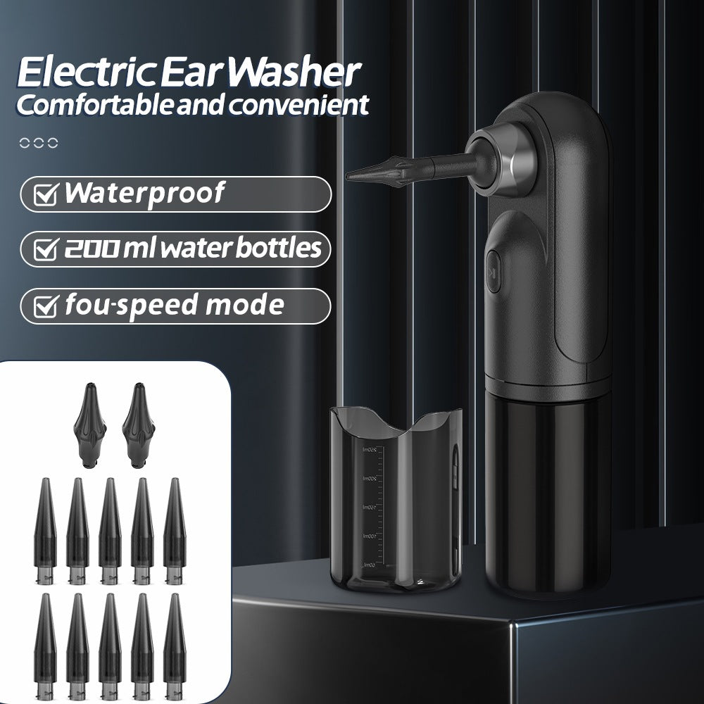 Rechargeable Electric Ear Cleaner & Washer Kit - Waterproof Ear Wax Removal System with 4 Modes & 12 Tips(black)