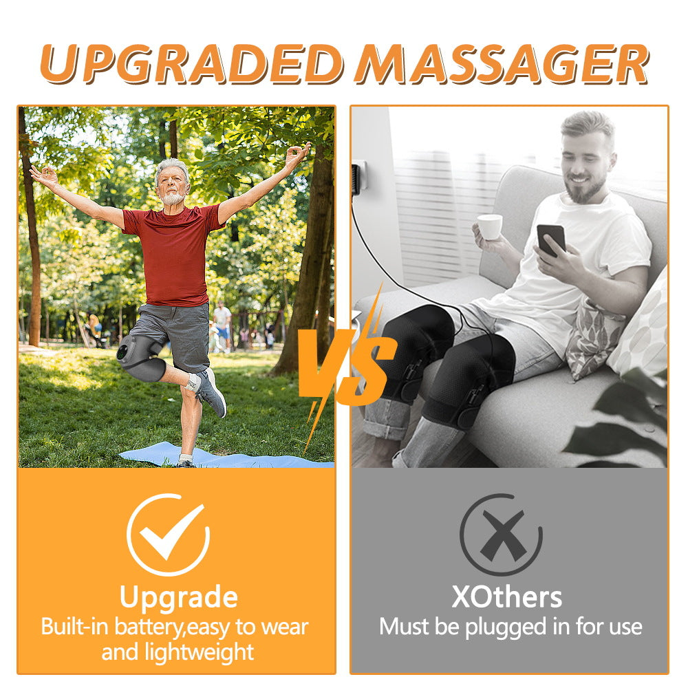 Rechargeable Heated Vibration Knee Massager Brace - 3 Heat & 3 Vibration Levels for Joint Pain Relief