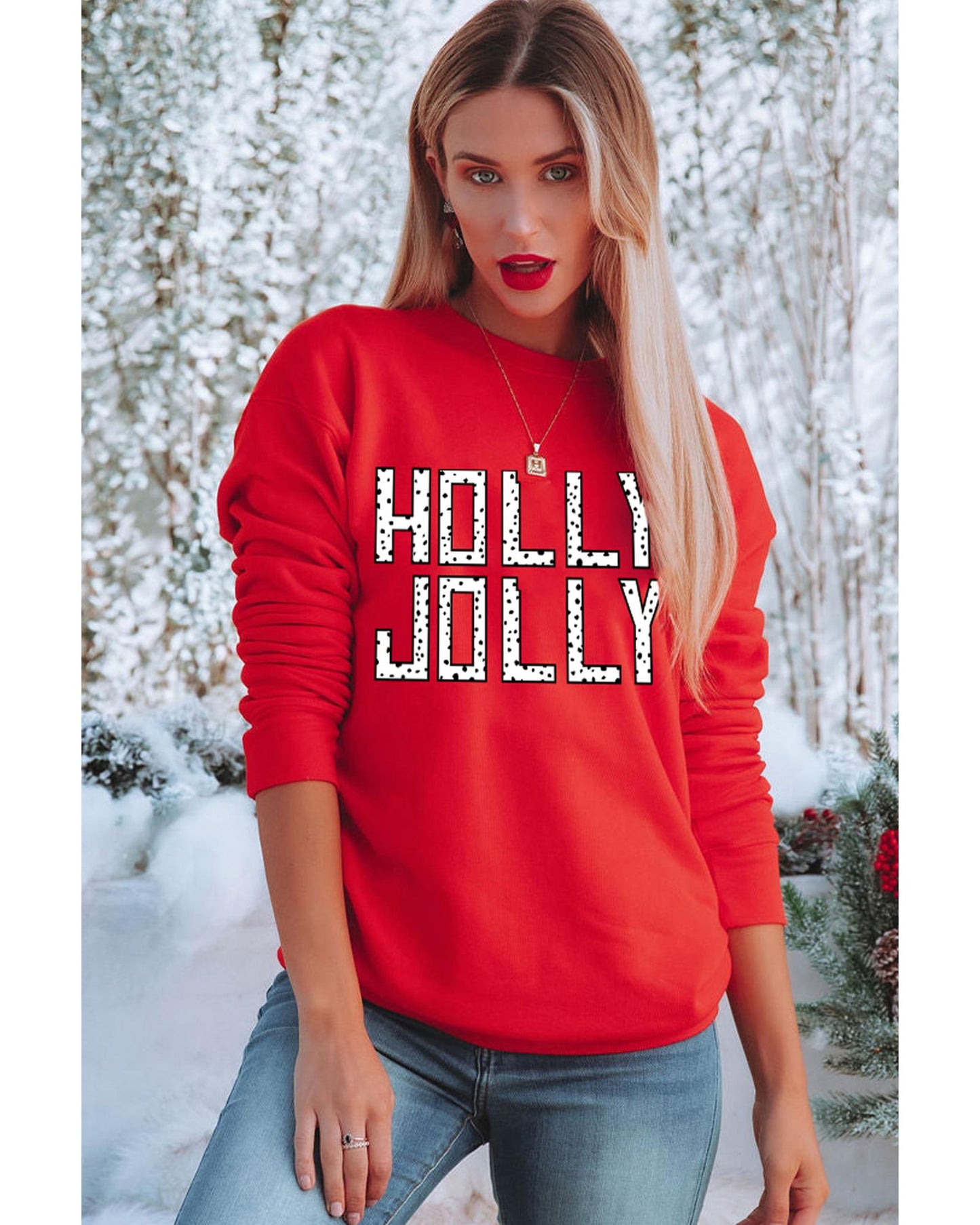 - Red HOLLY JOLLY Dotty Letter Graphic Christmas Sweatshirt