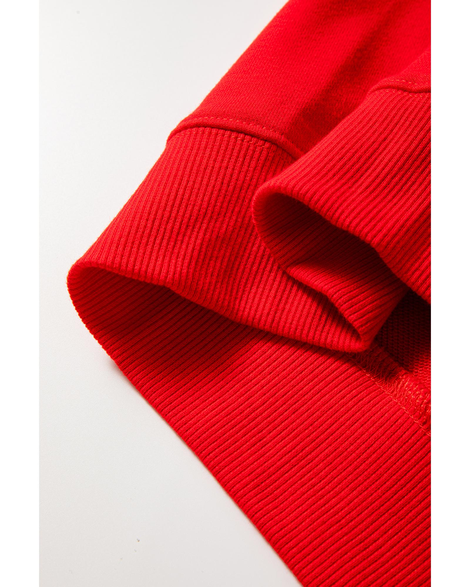 - Red sweatshirt with sequined Christmas tree graphic